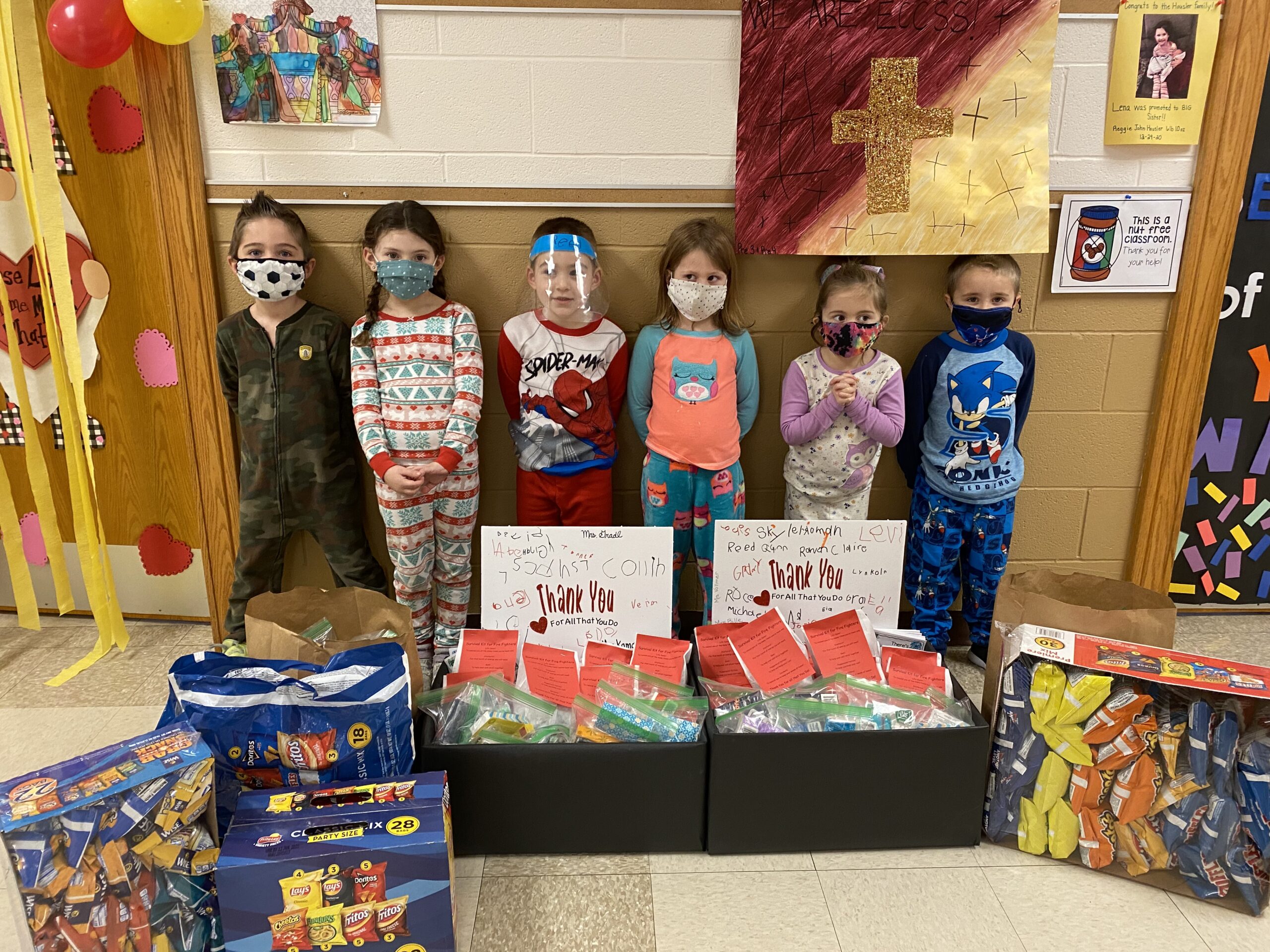 Recently the Preschool classes at St. Marys Catholic Elementary School collected treats for our local fire department. Students enjoyed a special PJ day while preparing the collected items into treat bags for both fire stations in town. ECCSS would like to thank our local first responders for their strength, service, and sacrifice!