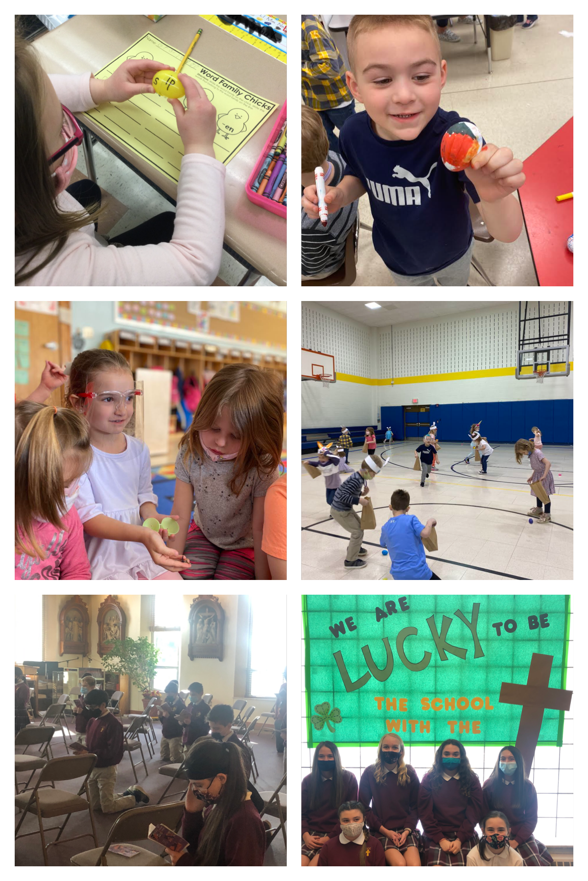 St. Marys Catholic Elementary School students in Mrs. Roberts’ Kindergarten class worked with different word families. They had to turn the Easter egg to form a word, sound out the word, and then write the word under the corresponding baby chick. As they turned the same egg it formed four different new words from the same word family.