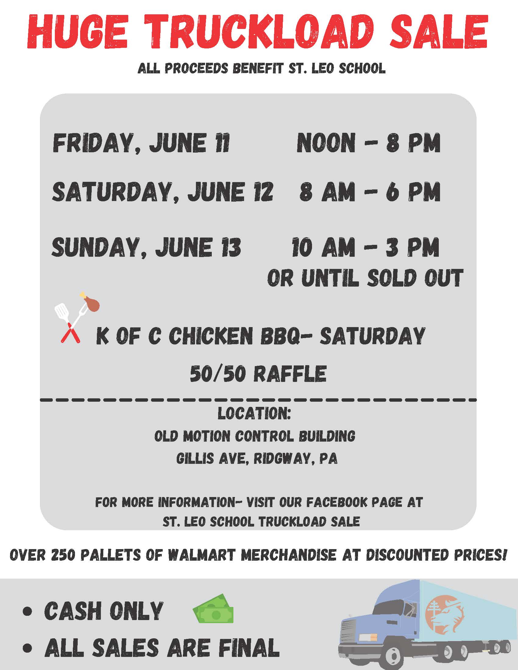 The St. Leo School Walmart Truckload Sale is just around the corner. SLS’s PTO needs your help to finish their fundraising year strong!