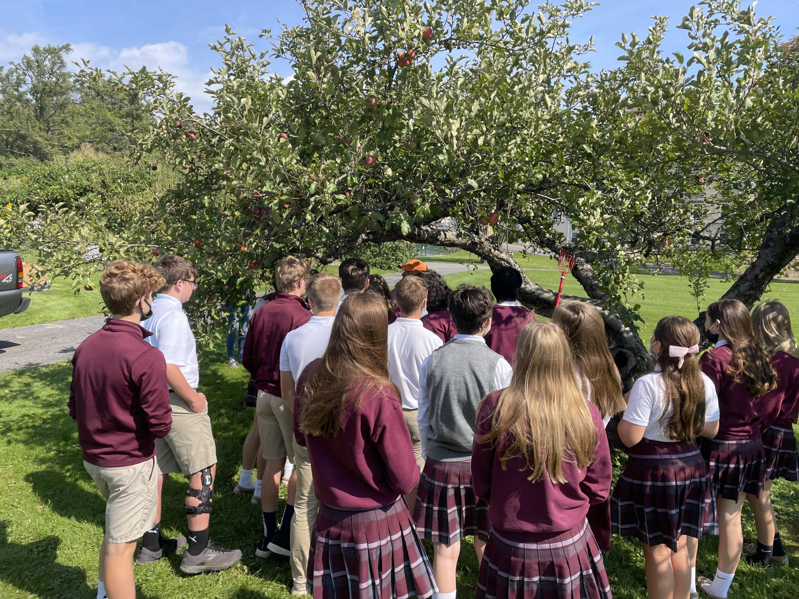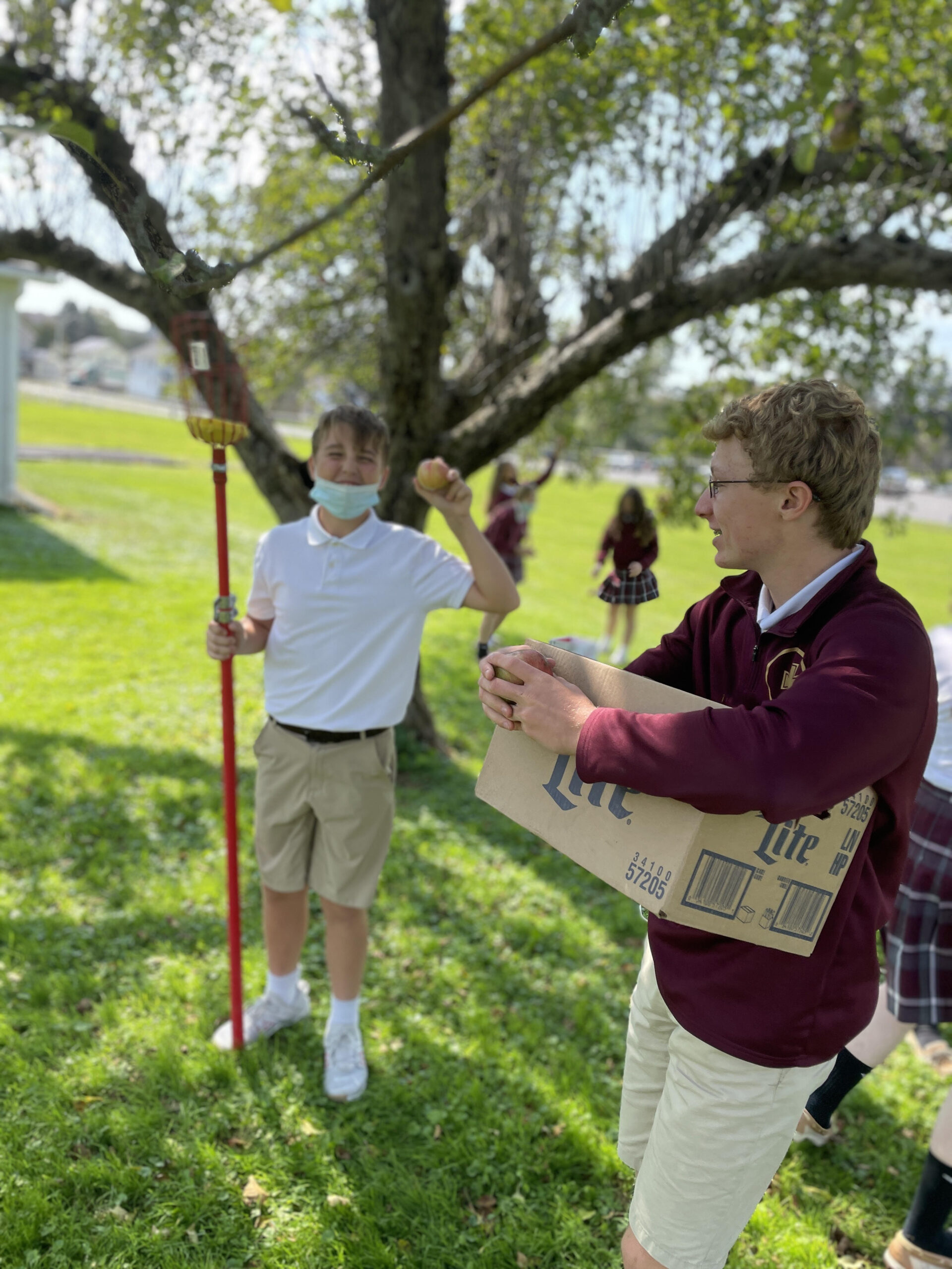 Students at St. Marys Catholic Middle School helped Rich Eddy at St. Marys Catholic Church to pick apples at the Convent grounds to sell at the Benedictine Gift Shop.