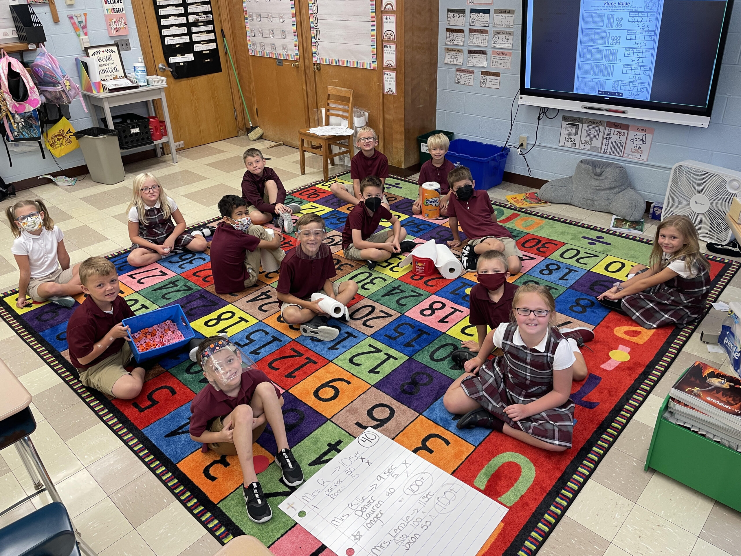 Miss Wendel’s 2B science class started off the year by seeing which teacher had the strongest paper towel wet while holding unix cubes. The class made their predictions based on the brand of paper towels and how many cubes they thought would rip the paper towel. The winner was Mrs. Bills paper towels with holding more than 100 unix cubes.