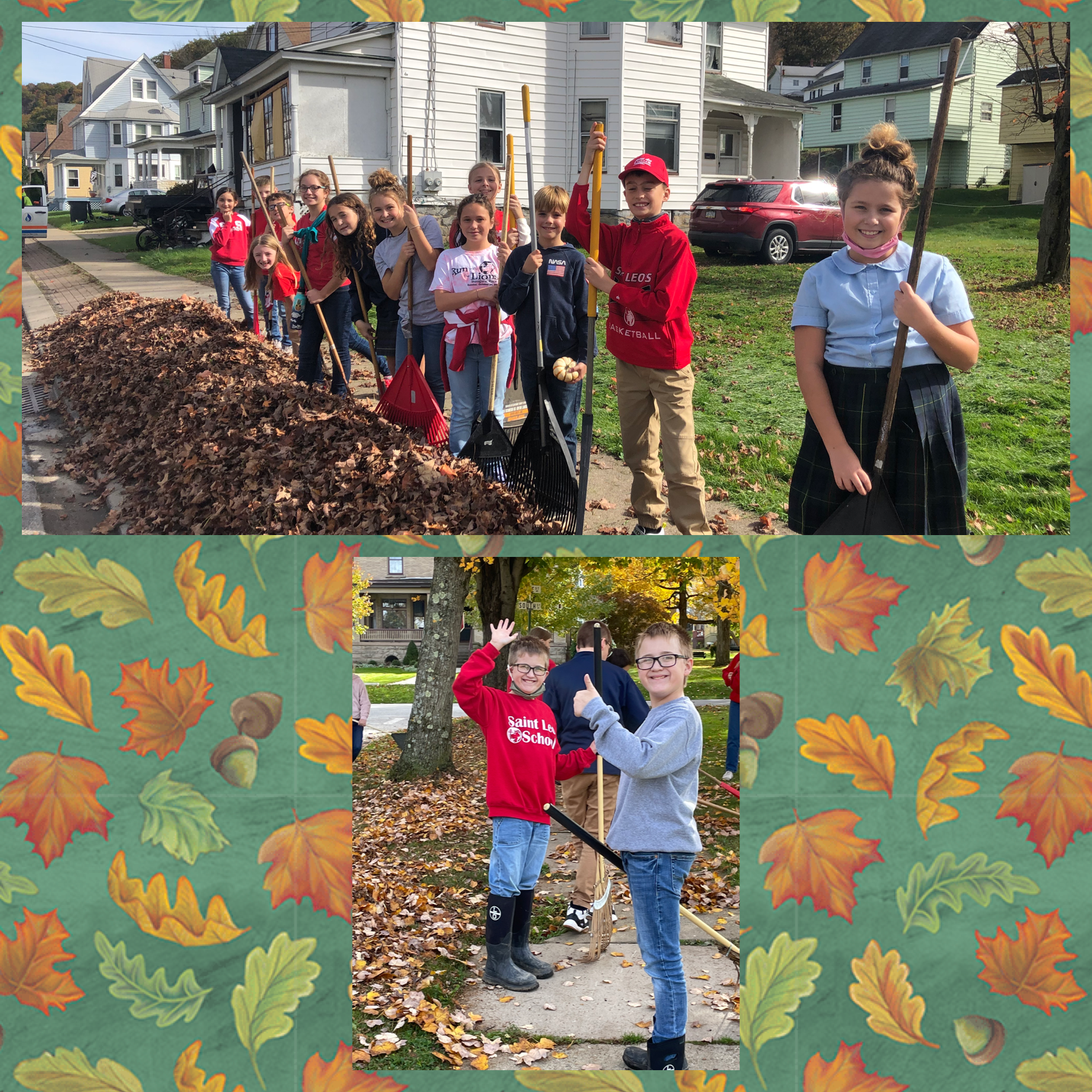 St. Leo Catholic School’s 5th through 8th grade students headed out on a beautiful day to rake yards in their community. This has become an annual community service project planned by the middle school boys.