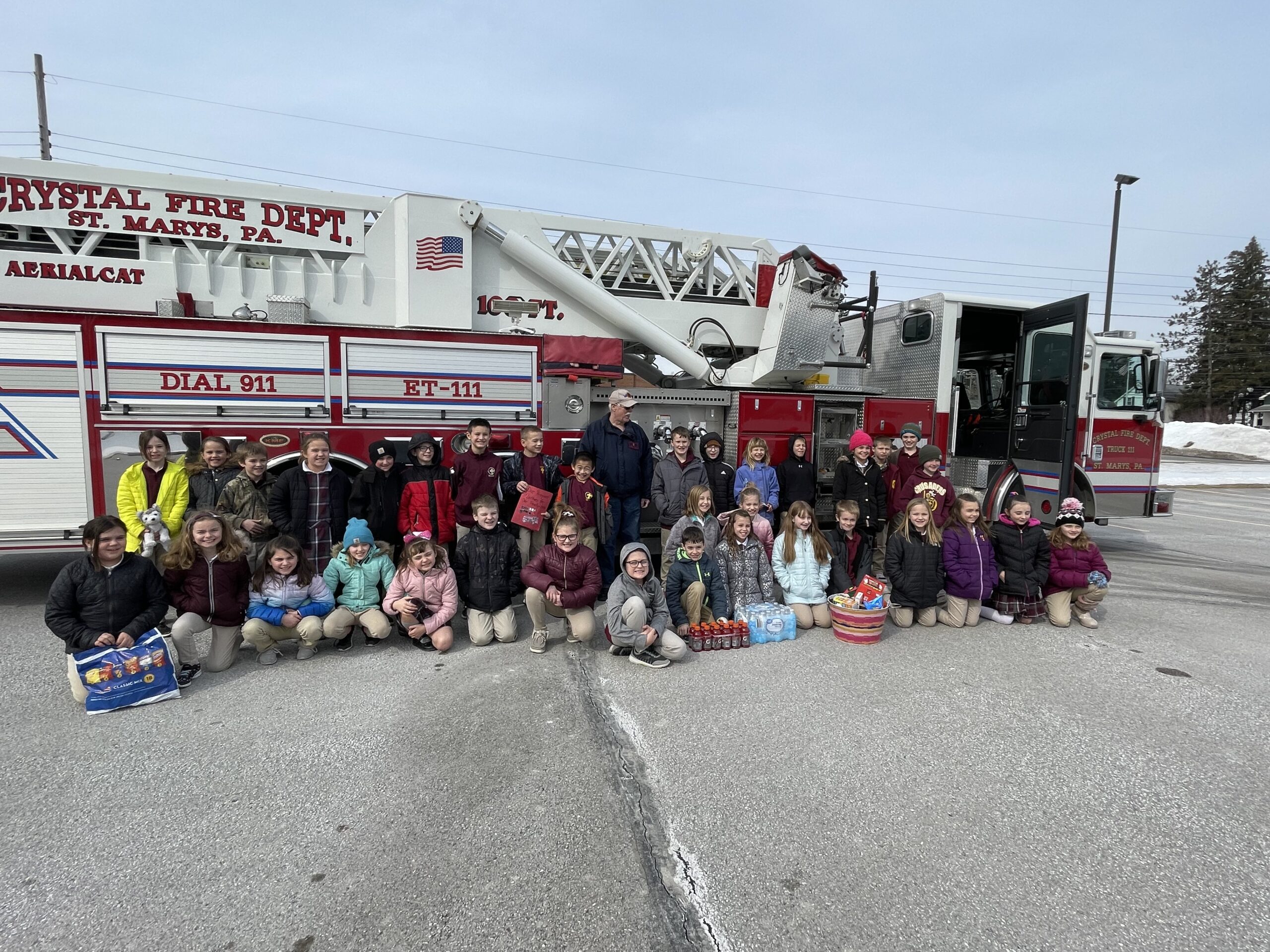 During Catholic Schools Week third grade students at St. Marys Catholic Elementary School chose the St. Marys Fire Department as part of their service project to give back to the community.