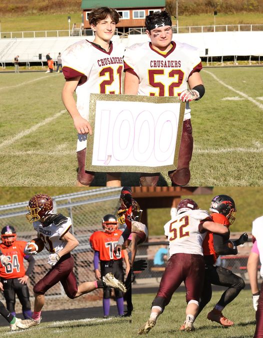 It was a milestone day for ECC players Noah Cherry and David Anderson at the Crusaders’ road game against Sheffield this past weekend. Cherry surpassed 1,000 yards rushing on the season, and Anderson recorded his 100th tackle of the season.
