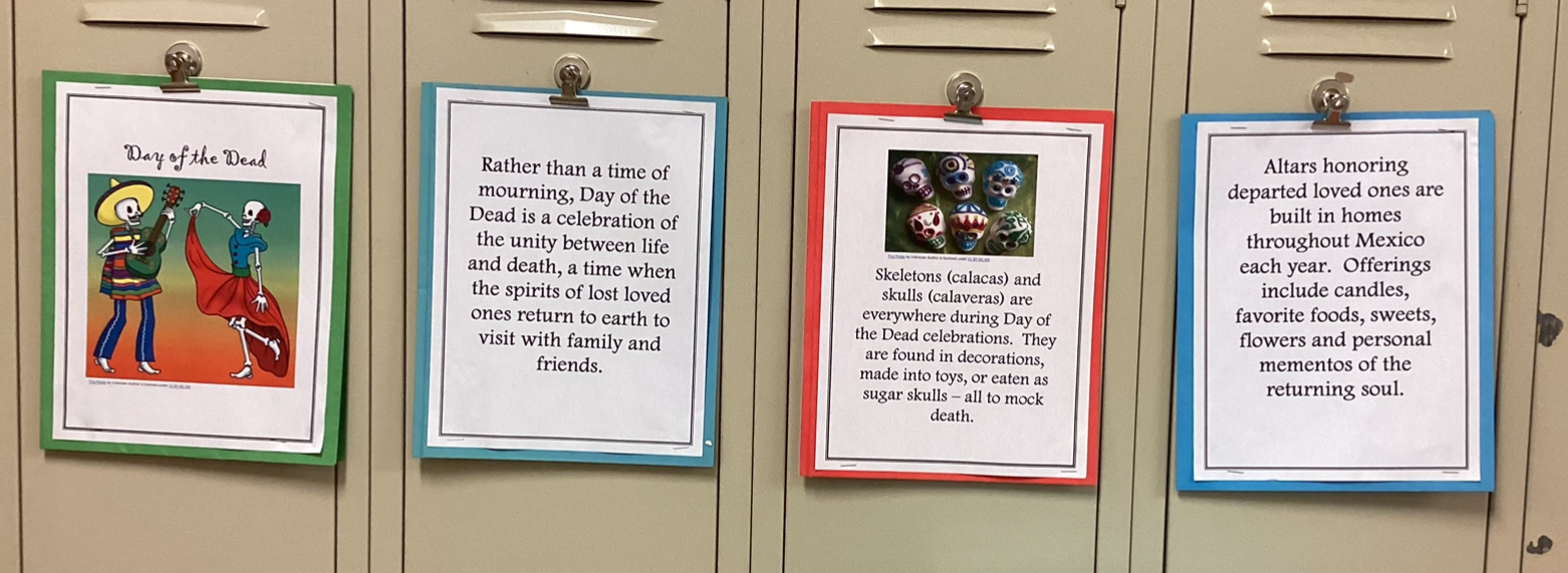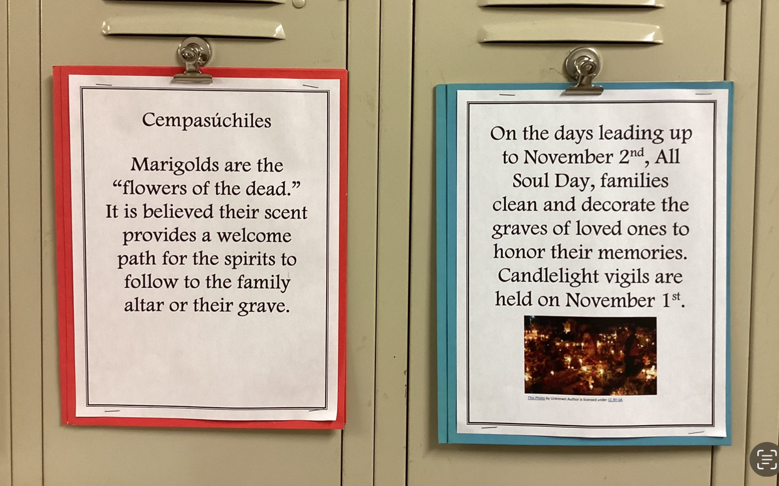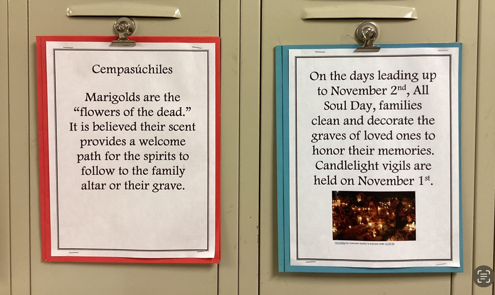 Last week students at St. Marys Catholic Middle School and Elk County Catholic High School celebrated the lives of family members and others who have passed by making Day of the Dead altars, masks, and drawings in Mrs. Reinke’s Spanish 1, 2, & 3 classes and 7th grade Exploratory Spanish class.