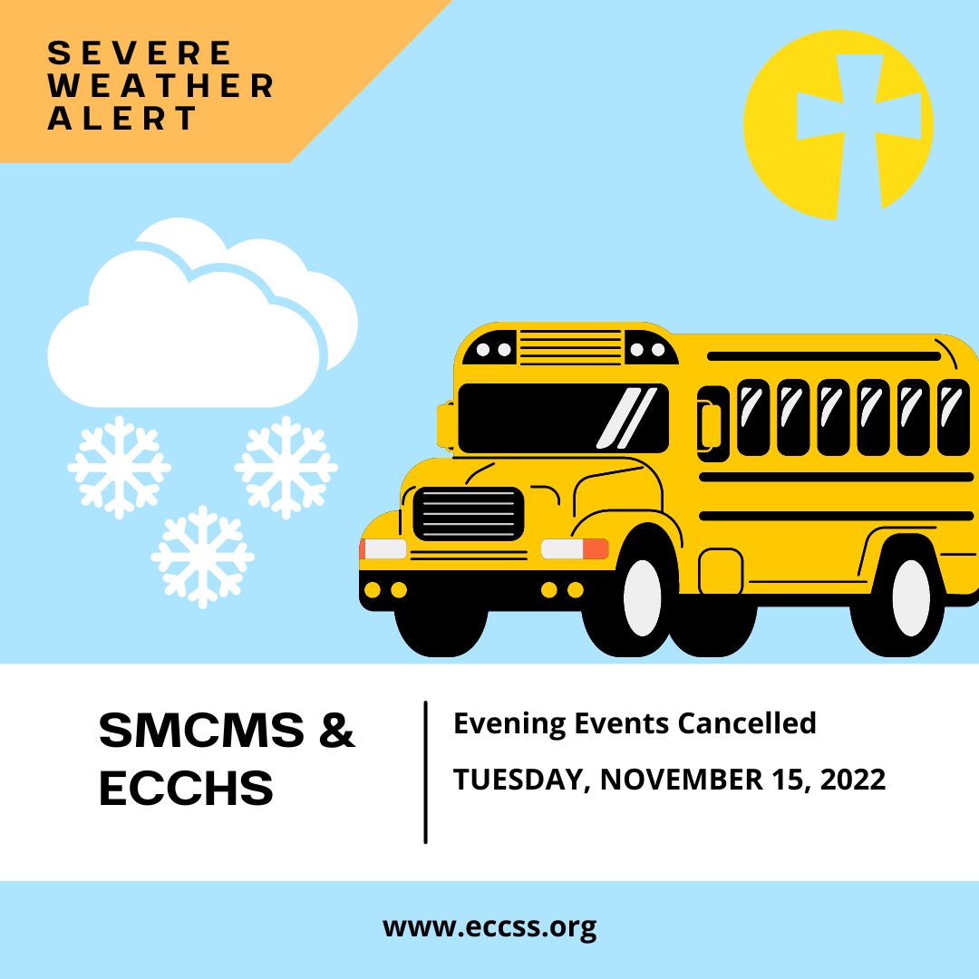 Due to poor weather conditions, all evening events at SMCMS and ECCHS for Tuesday, November 15 are cancelled.