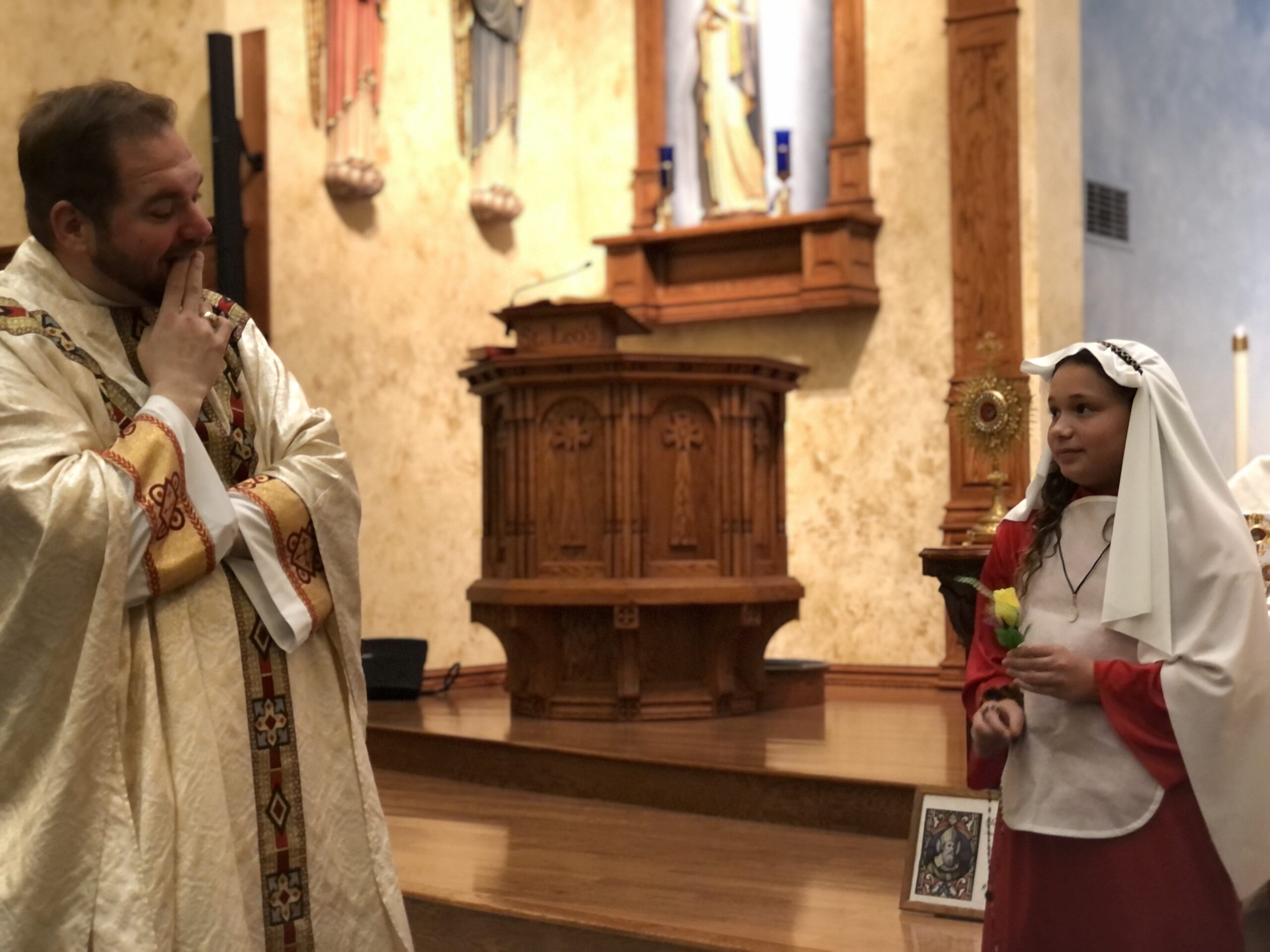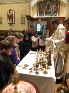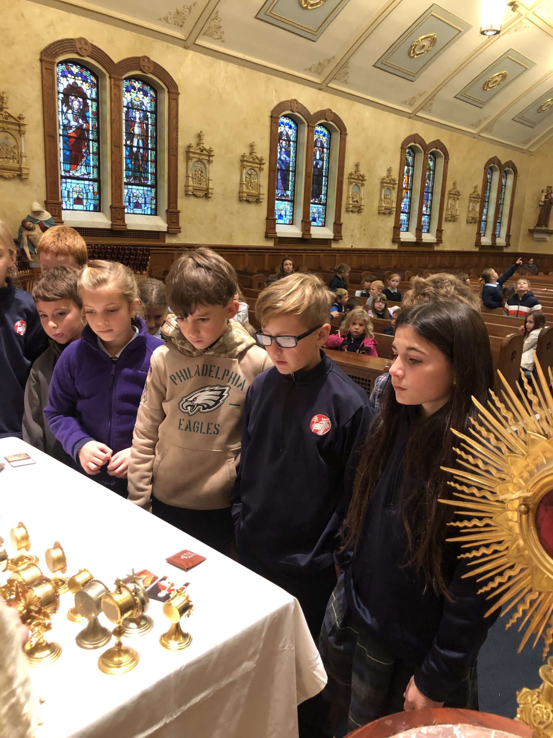 For the celebration itself, Fr. Justin coordinated a beautiful display of the Church’s relics and provided explanations of each to the students and staff. A relic usually consists of the physical remains or the personal effects of a saint or venerated persons. Students were able to interact with these relics after the Mass.
