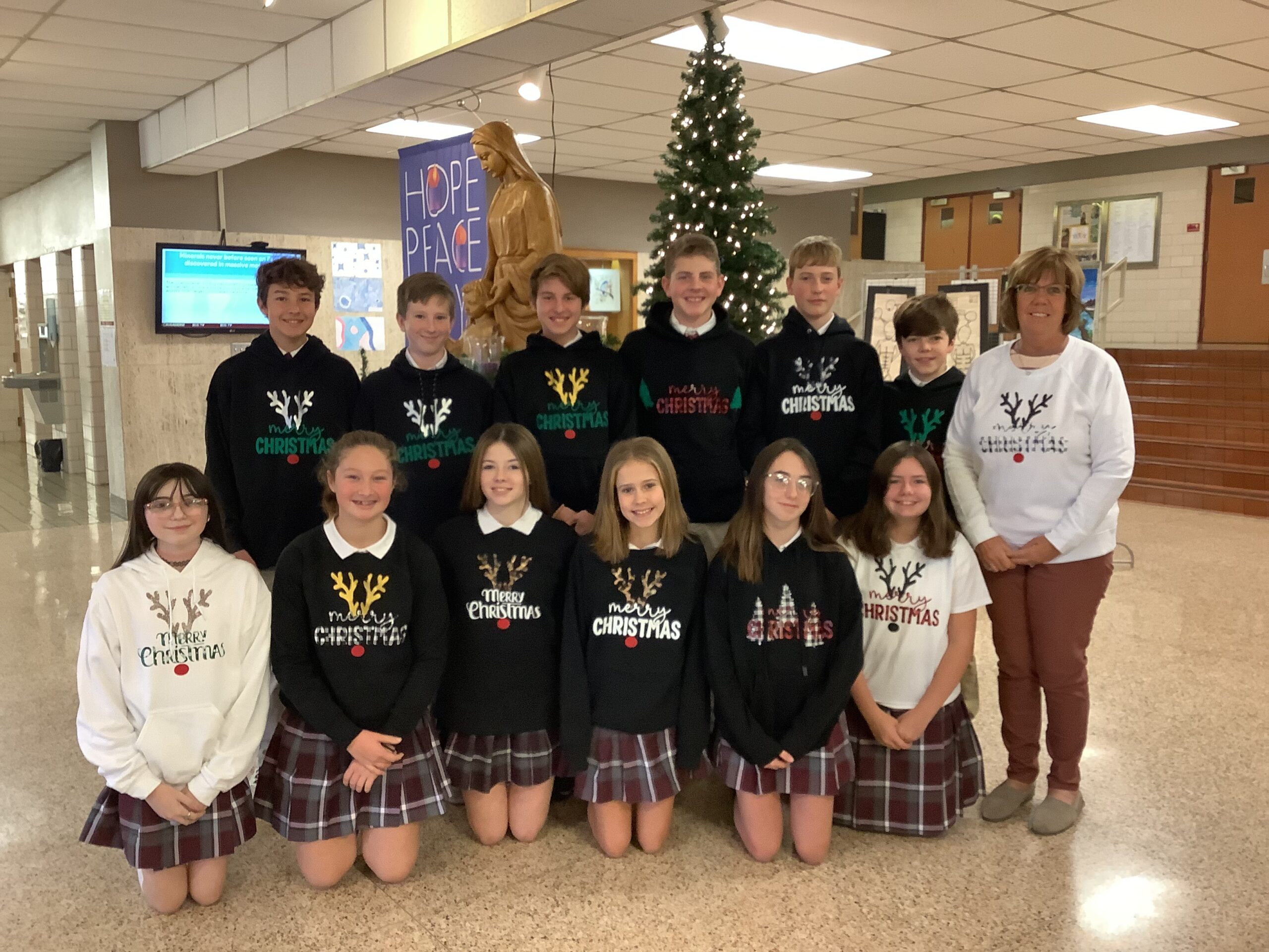 Tis’ the season Middle School Students in Mrs. Meyer’s Cricut Elective Class recently made shirts. After designing, measuring, weeding, and applying the design, students created a sweatshirt to wear through the Christmas season.