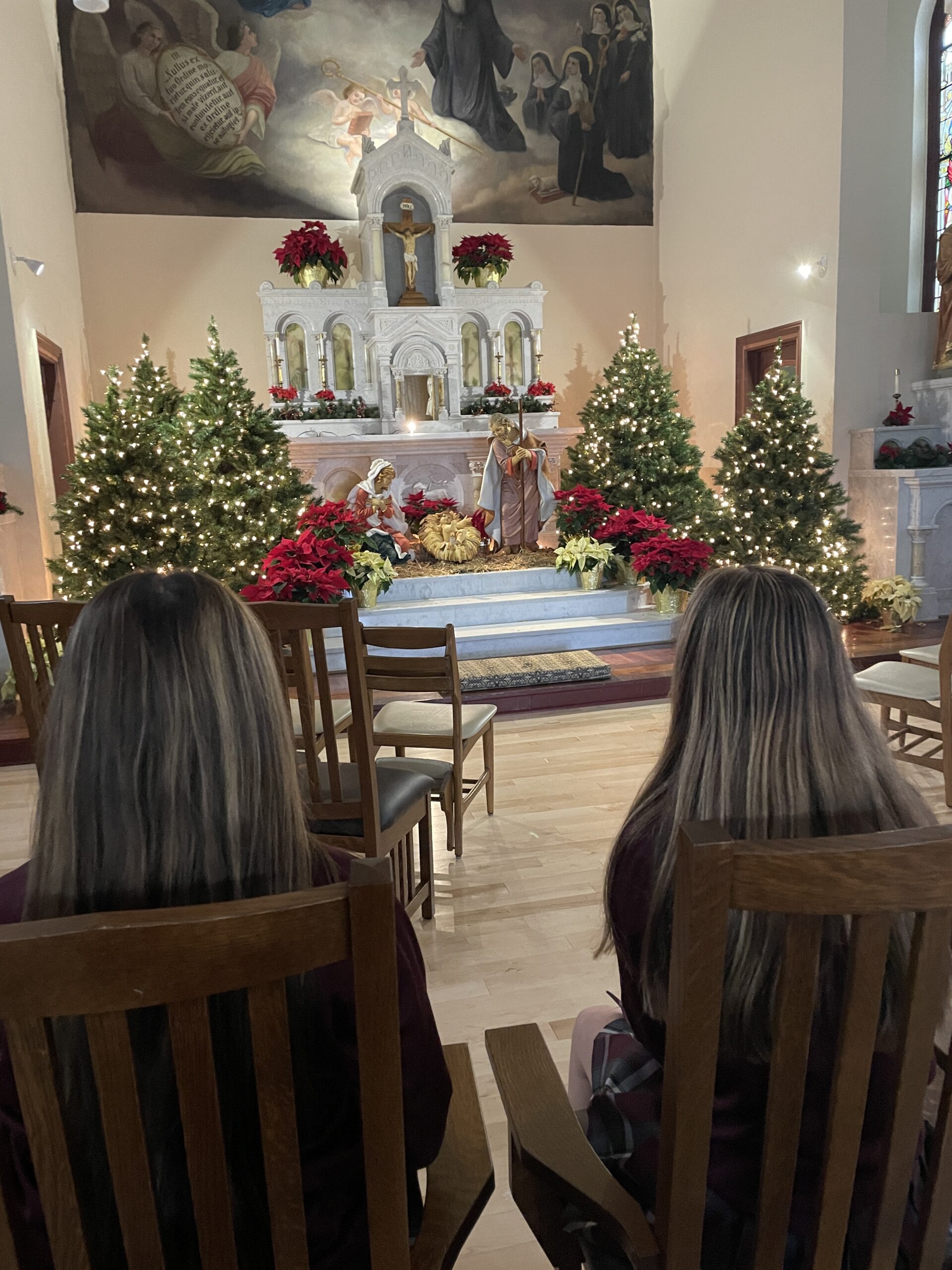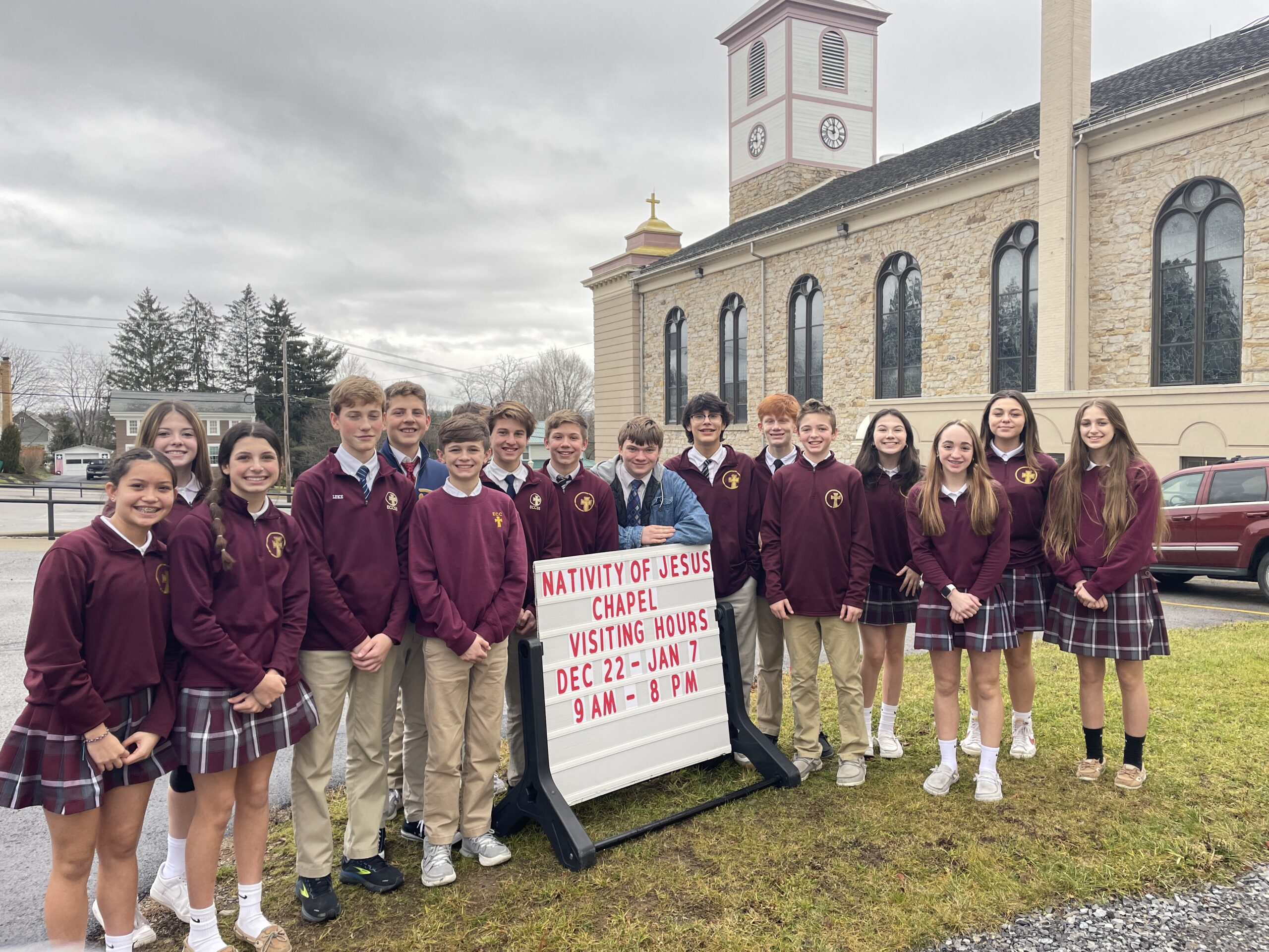 In their religion class, the students at St. Marys Catholic Middle School visited the Nativity of Jesus Chapel on the grounds of St. Marys Parish during this first week of the new year. The students had the opportunity to offer prayers at the nativity scene displayed in the chapel and learned about the history of the chapel and the Benedictine Sisters. Our gratitude to St. Marys Parish for having the chapel open during the Christmas season.