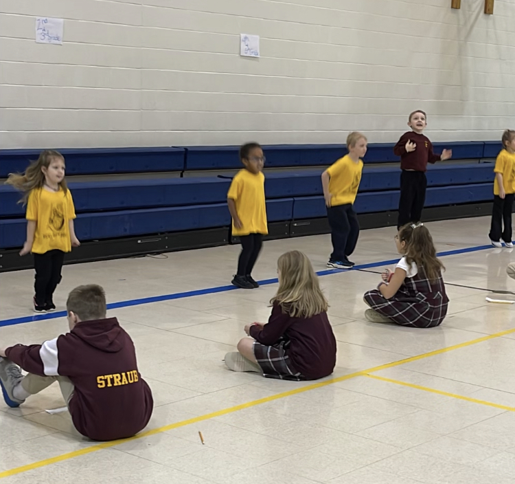 Kindergarten students at St. Marys Catholic Elementary School held a Hop-A-Thon this morning to help raise money for the Muscular Dystrophy Association.