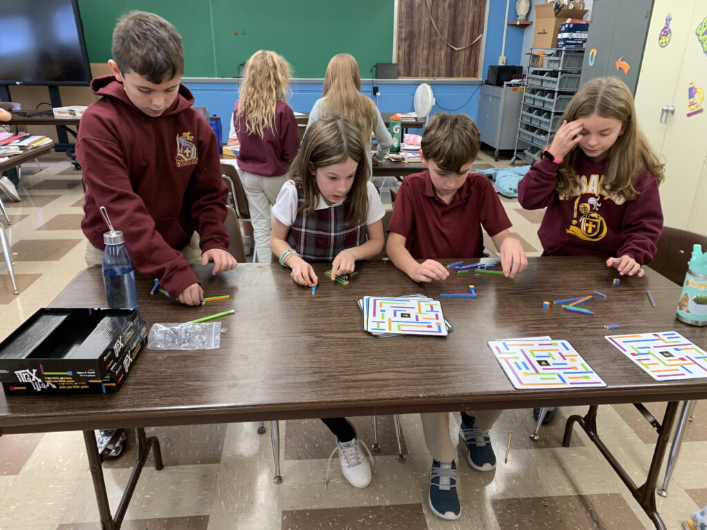 The 4th and 5th grade class at St. Marys Catholic Elementary School develop spatial reasoning skills through game play during their STREAM (Science, Technology, Robotics, Engineering, Arts, and Math) curriculum.