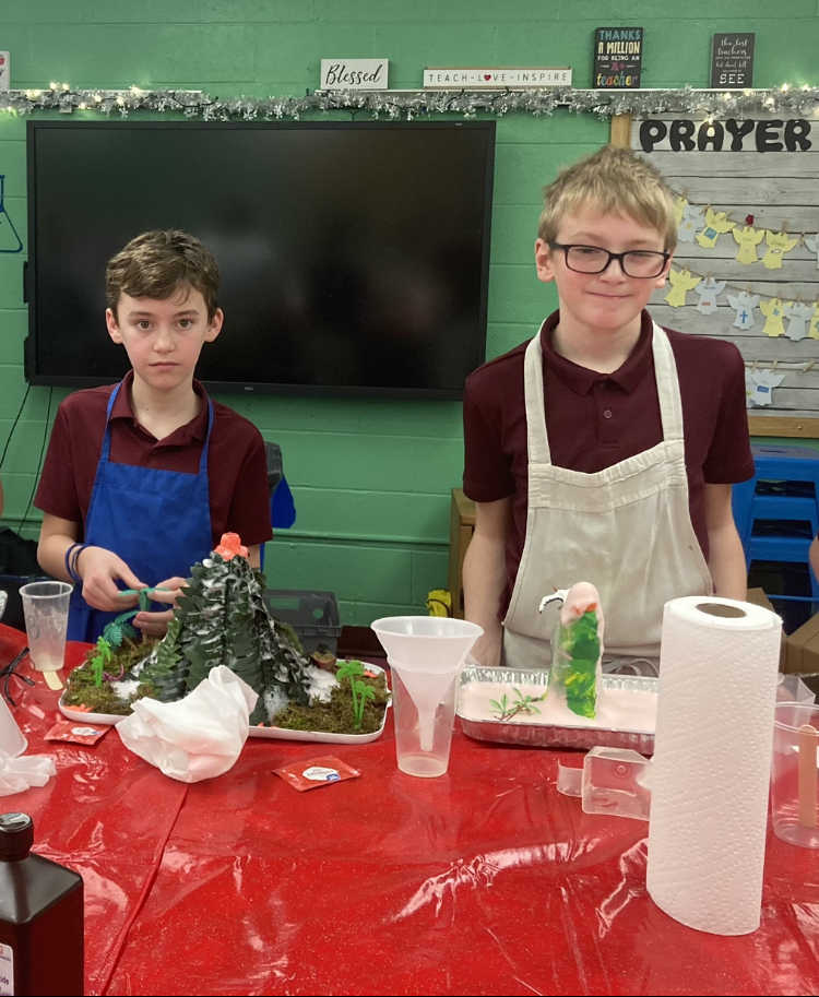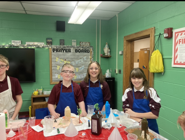 The fifth grade students at St. Marys Catholic Elementary School recently studied the movements of the earth’s plates. To conclude the unit, they each made and erupted their own volcano. Preschool students were invited to watch the volcano eruptions.