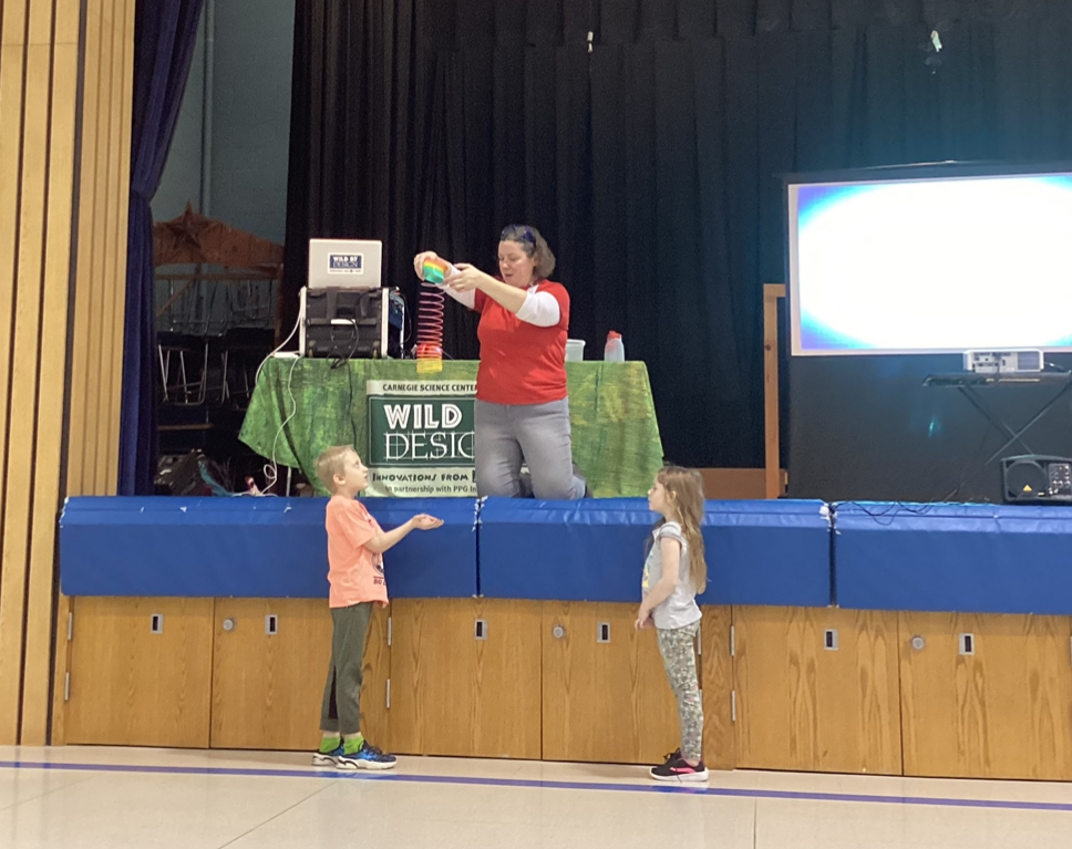 Students enjoyed demonstrations by Carnegie’s Wild By Design program. Carnegie Science Center representative Michaela Williams discussed with students if you want to build something bigger, better, faster, or stronger, chances are you can find the answer in nature. Nature has been running field tests for millions of years, and this show demonstrates how scientists can take the best of what nature has learned and apply it to new technology.