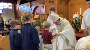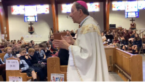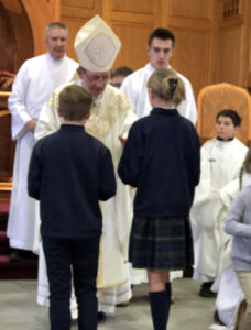 Bishop Persico reflected on the value of Catholic education and used his homily to discuss the life of St. John Bosco, whose feast day falls on January 31. He was pleased to see a vibrant church filled to capacity with students, who participated as gift bearers, altar servers and lectors. The children also worked with music teacher Alyssa Wendel and QOW music director Stephen Toney to provide a choir and wonderful music ministry for the Mass.