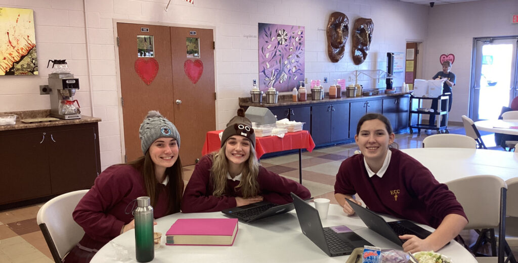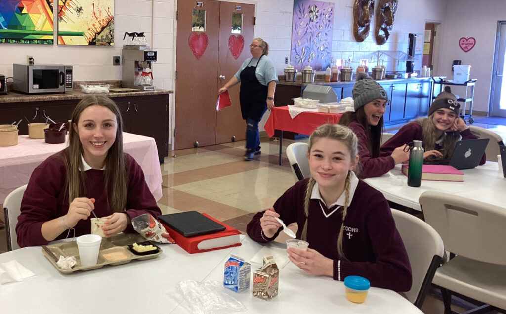 Students at Elk County Catholic High School are shown enjoying Ice Cream Sundae treats as part of their Catholic Schools Week celebration.
