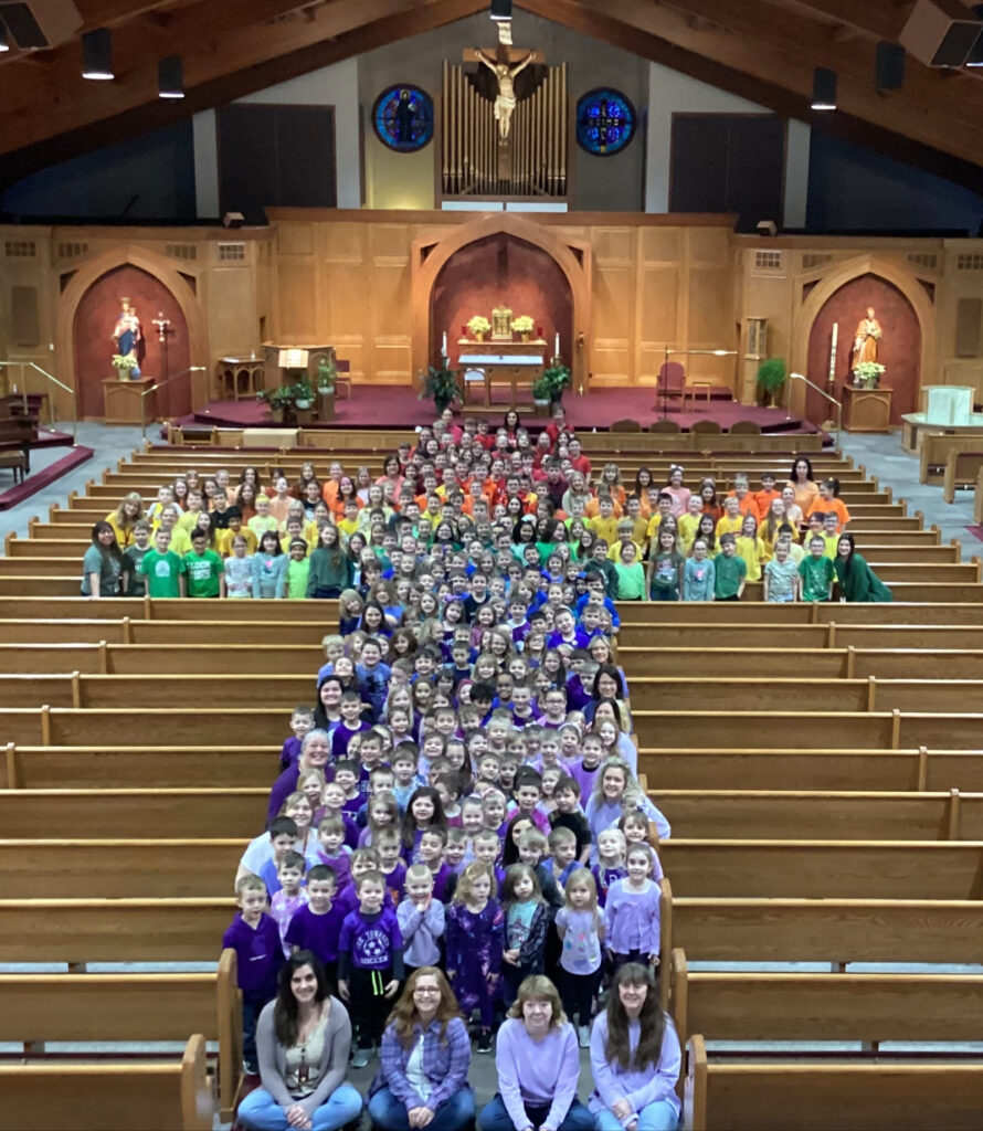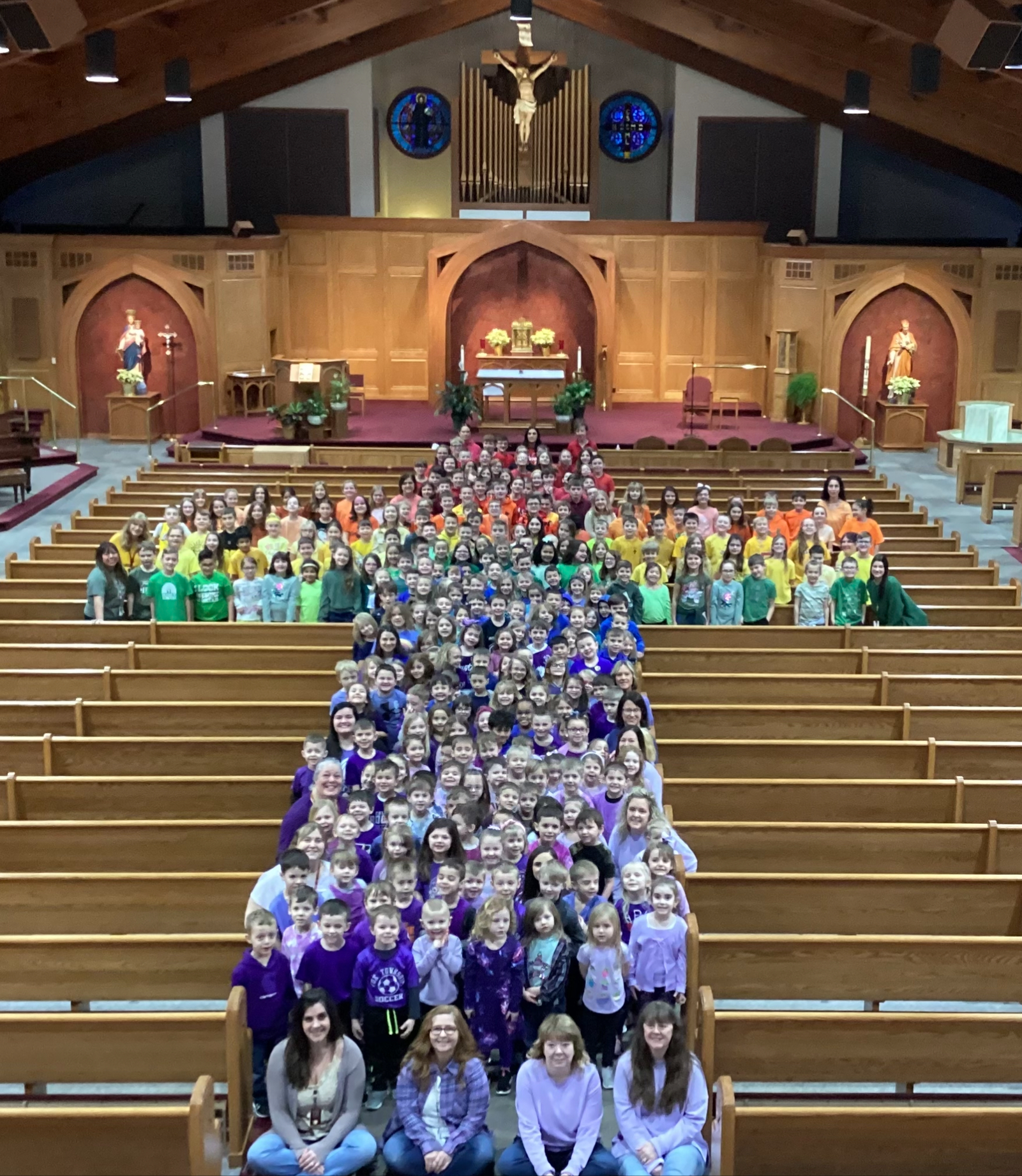 During Catholic Schools Week students participated in a dress down day in all the colors of the rainbow to help raise money for the local Chamber of Commerce’s Community Fireworks Fund. SMCES successfully raised $468 towards the Chamber’s 4th of July Fireworks show.
