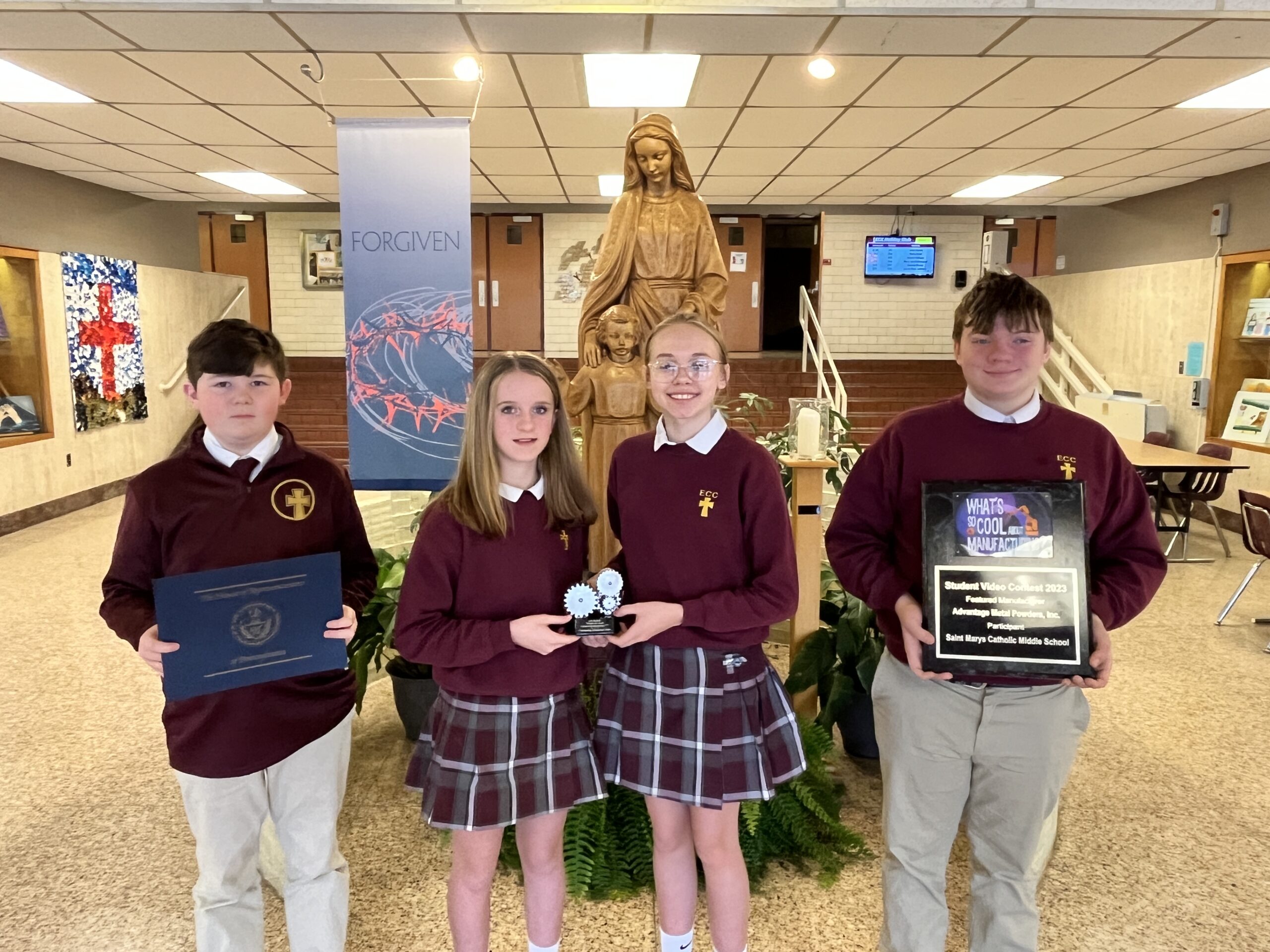 On Tuesday, March 28 students from St. Marys Catholic Middle School attended the awards ceremony for the What’s So Cool About Manufacturing video contest. Schools from across the area participated in the contest, creating a short video highlighting local manufacturing and manufacturing careers.