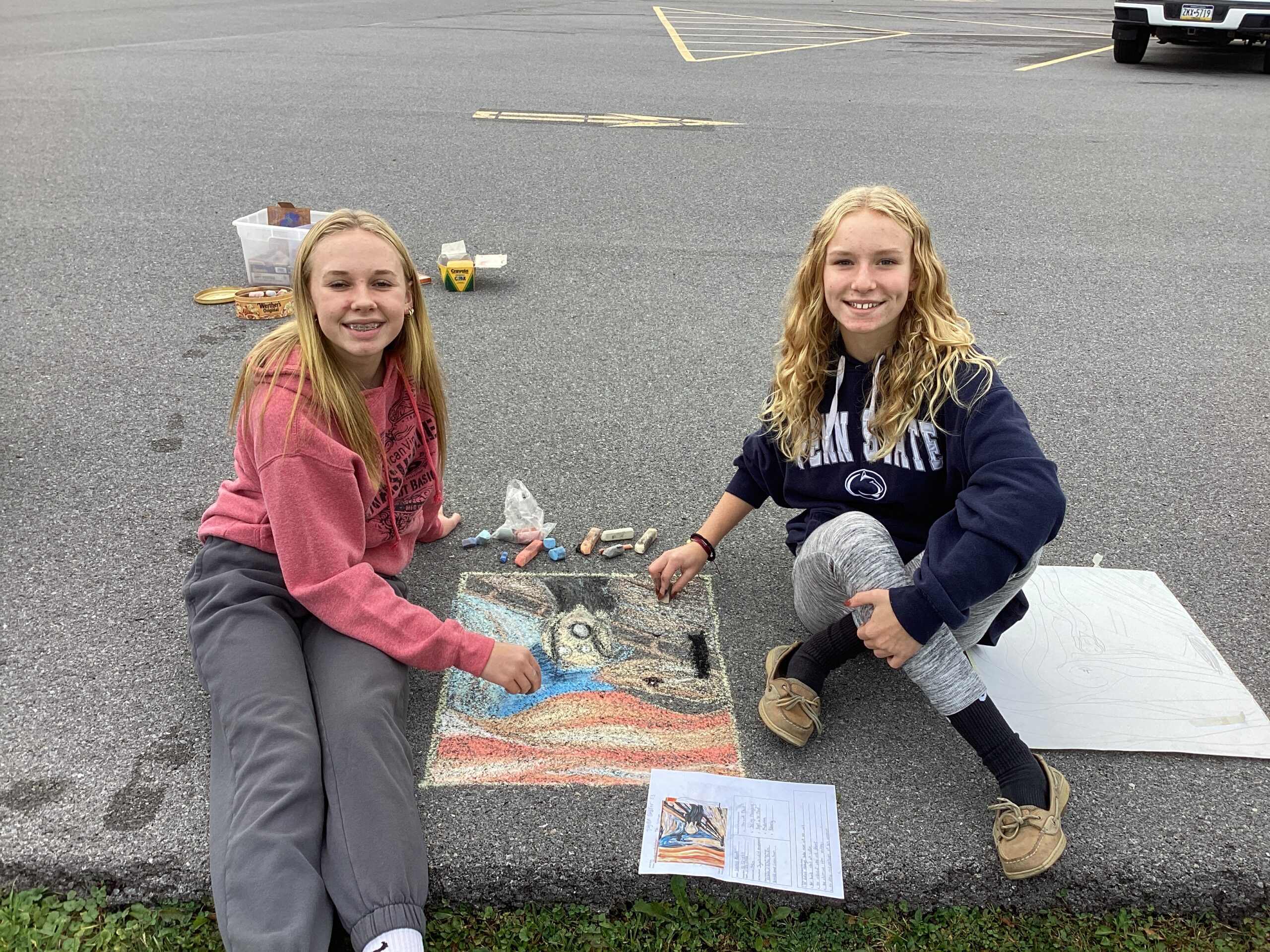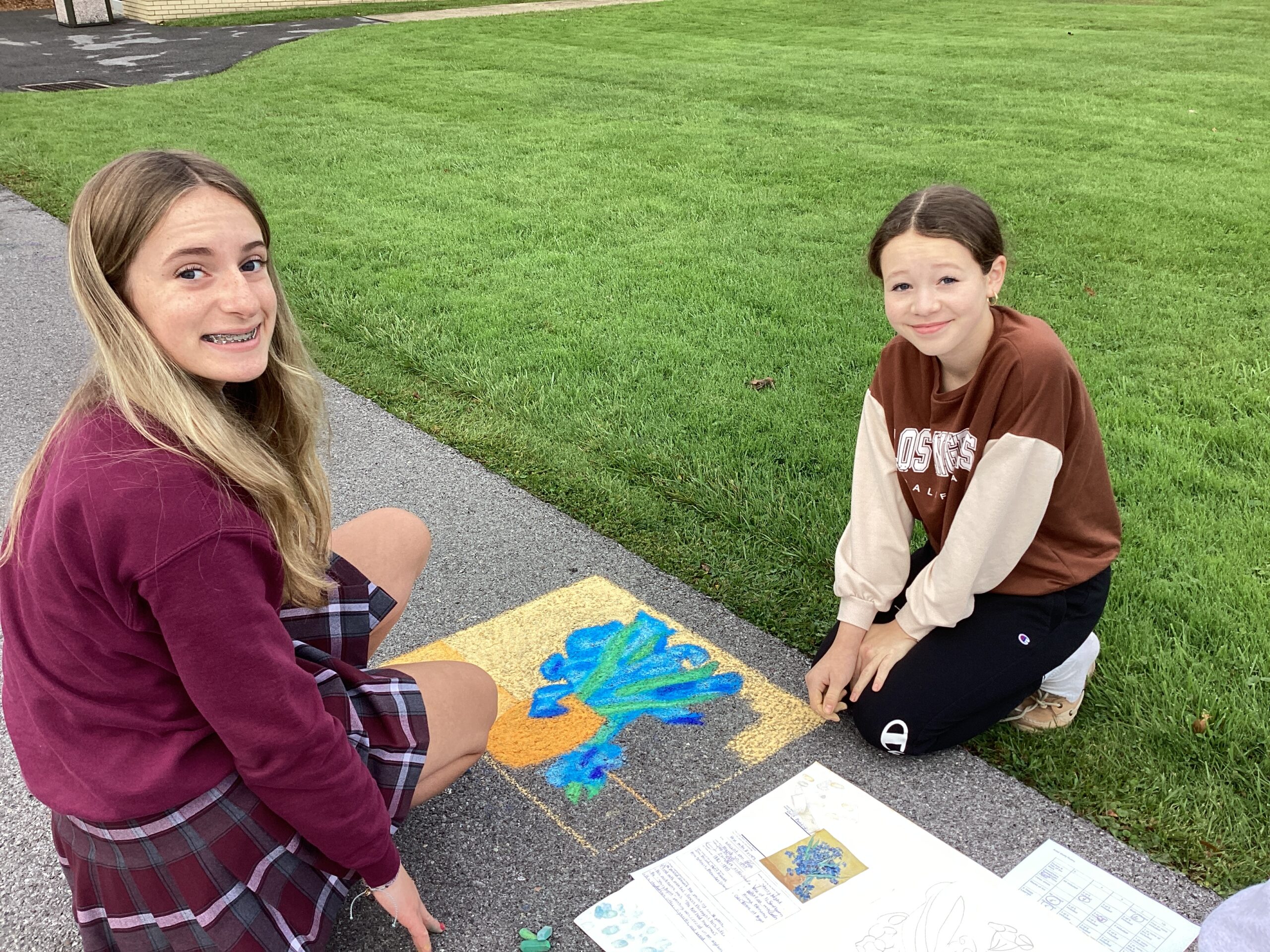 St. Marys Catholic Middle School students researched famous artists in Mrs. Daghir’s art class this week. As part of their project, students sketched the artwork they researched and created chalk art in the school parking lot for all to enjoy!
