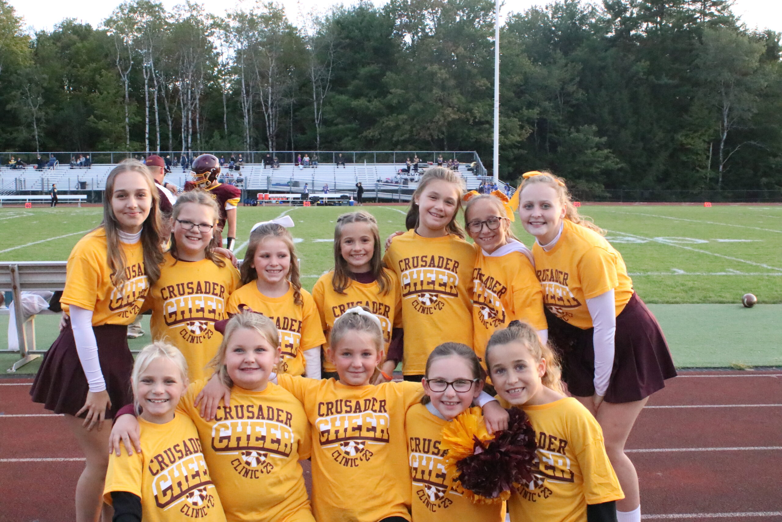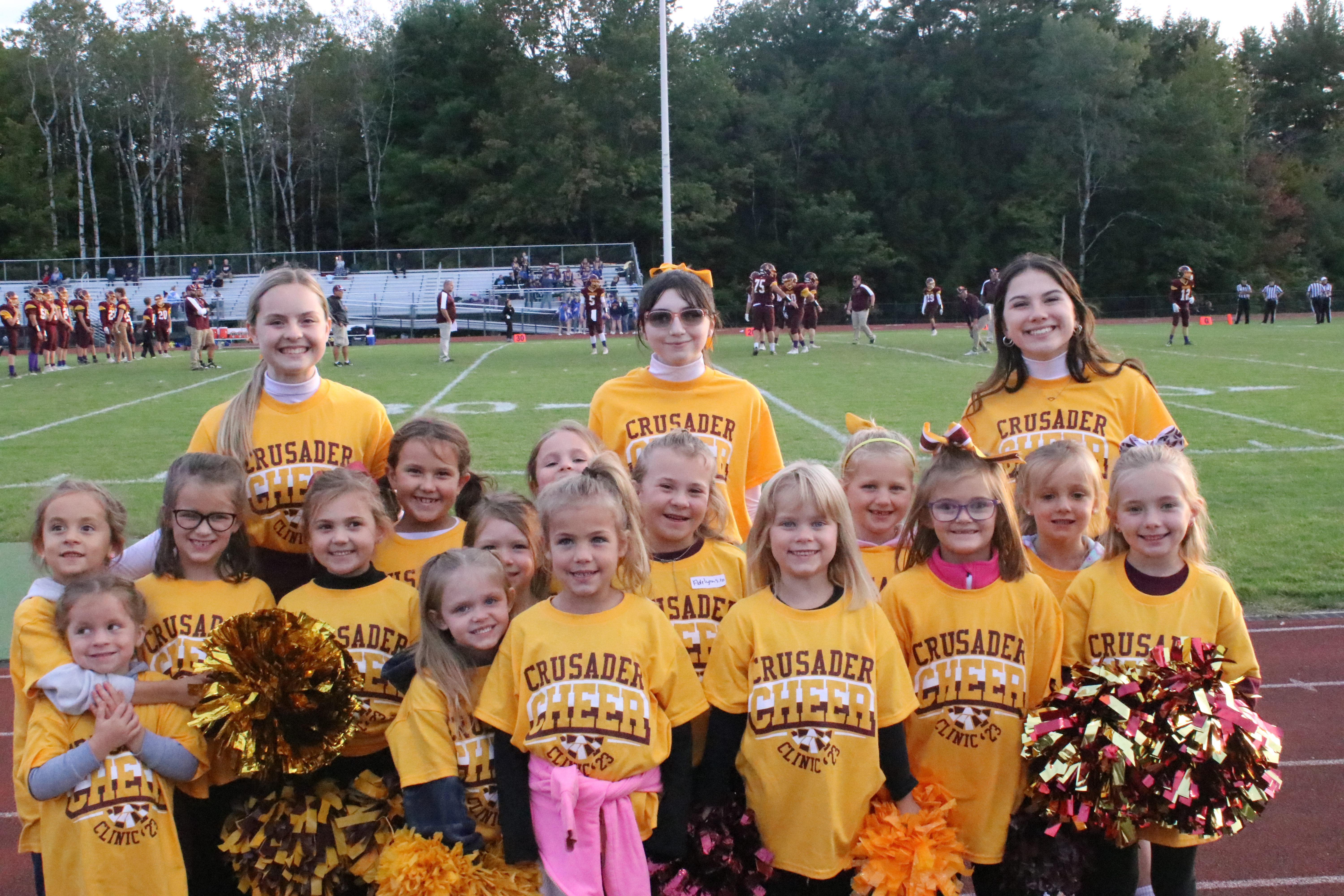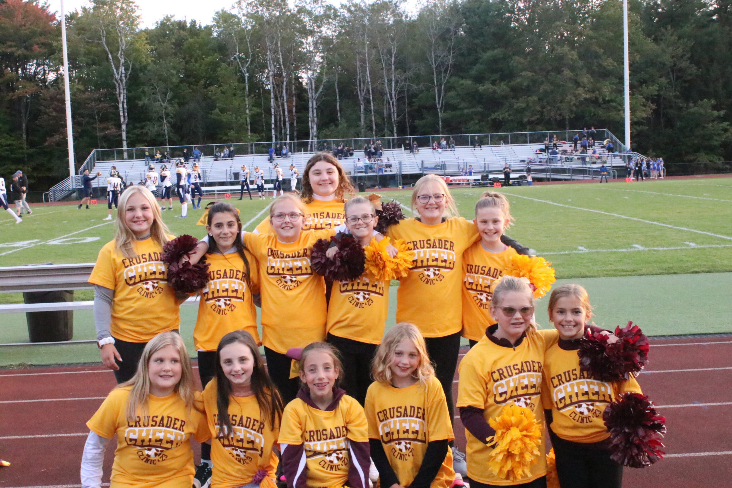The cheer clinic participants got to cheer with the Varsity squad on September 22nd at the ECC vs. Otto Eldred football game while the 1st & 10 participants lined up to cheer on the Crusaders as they took the field.