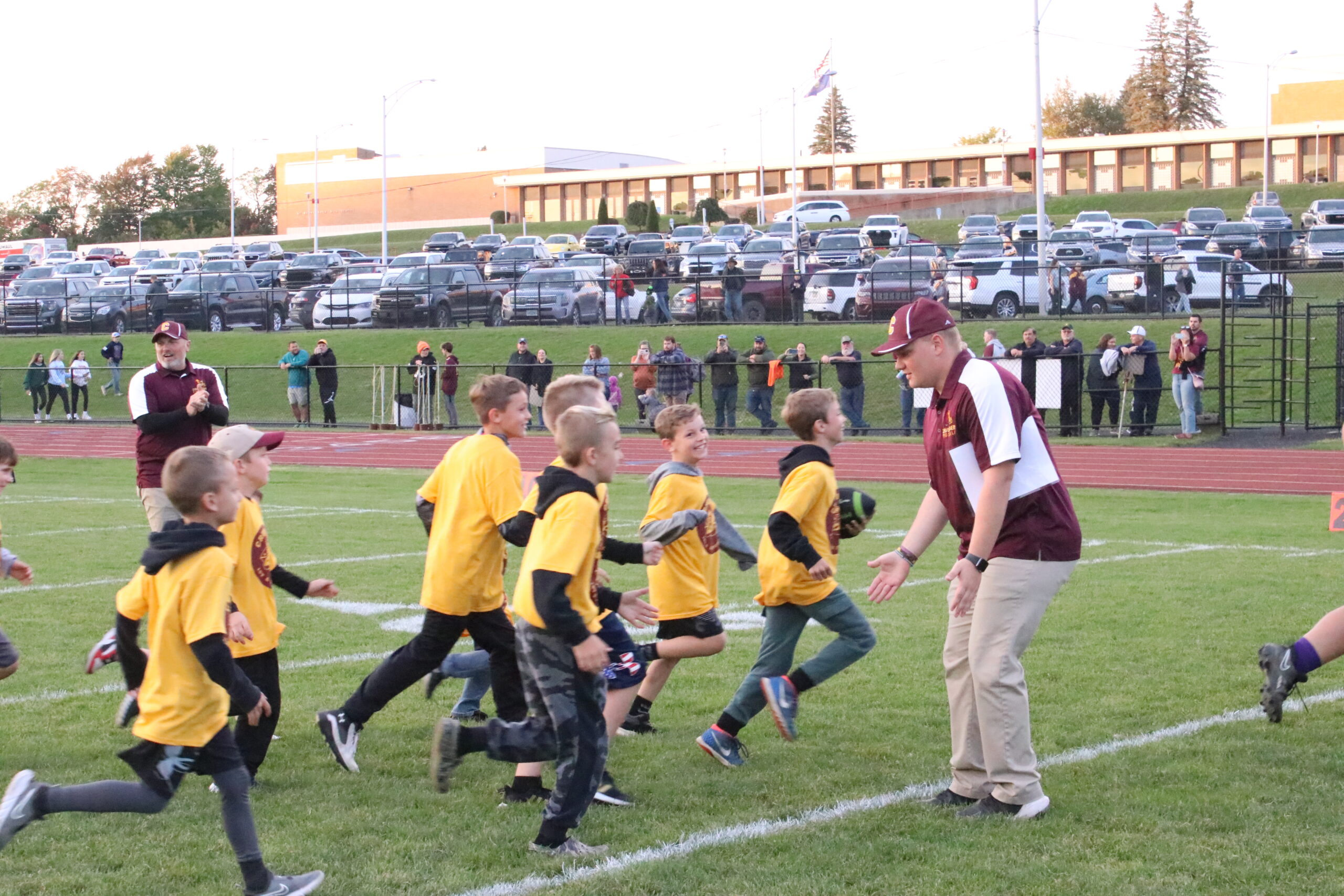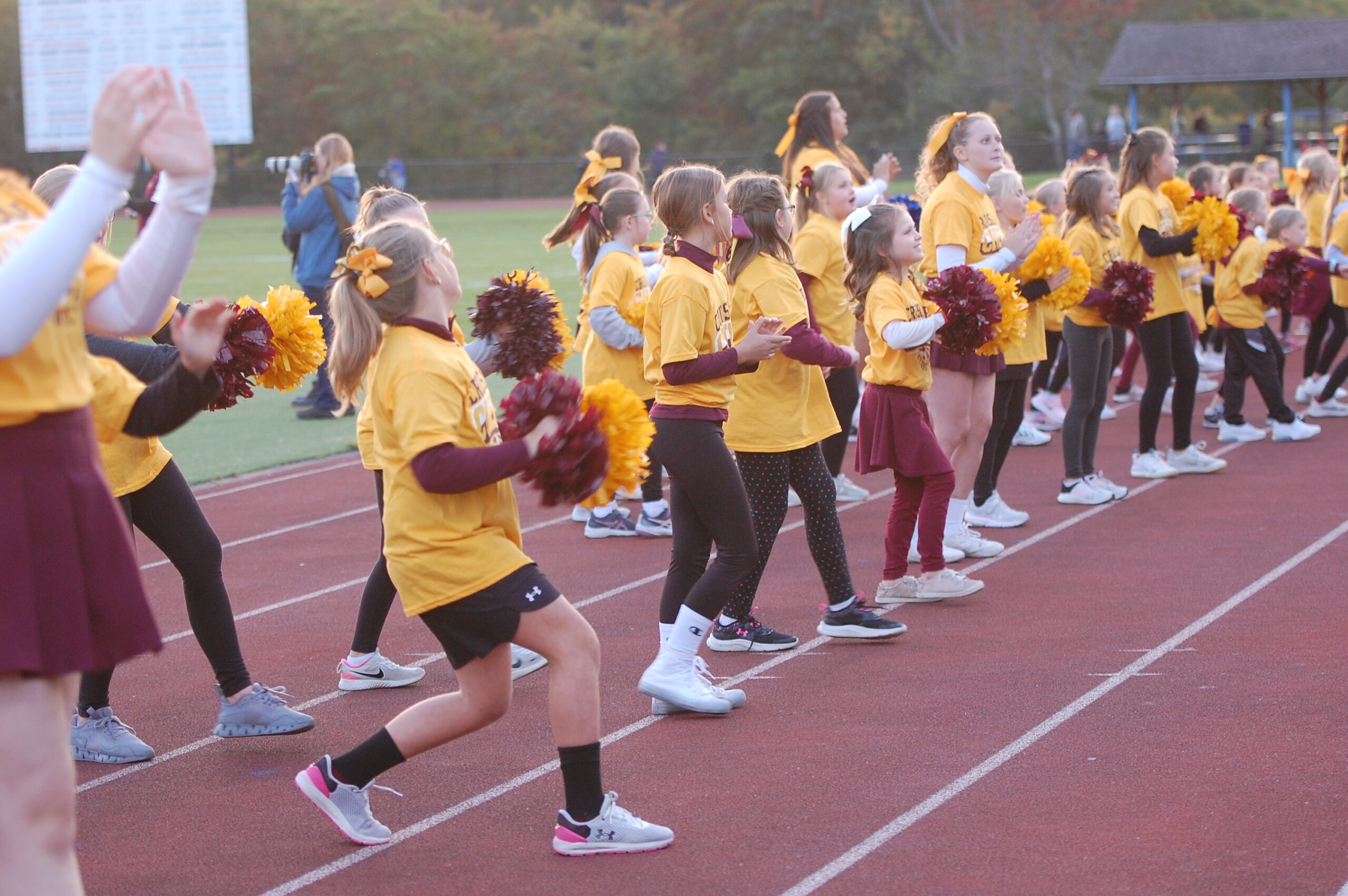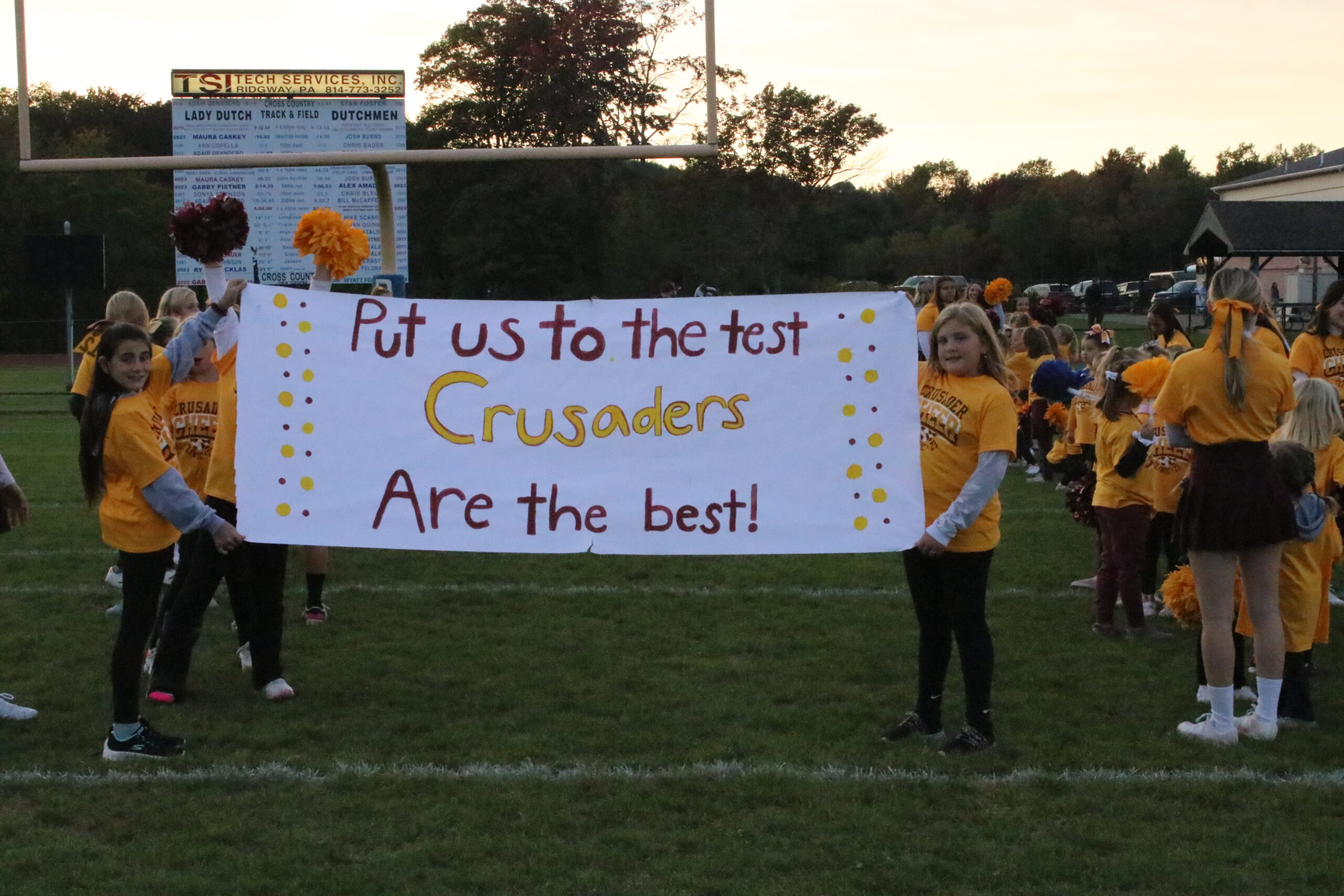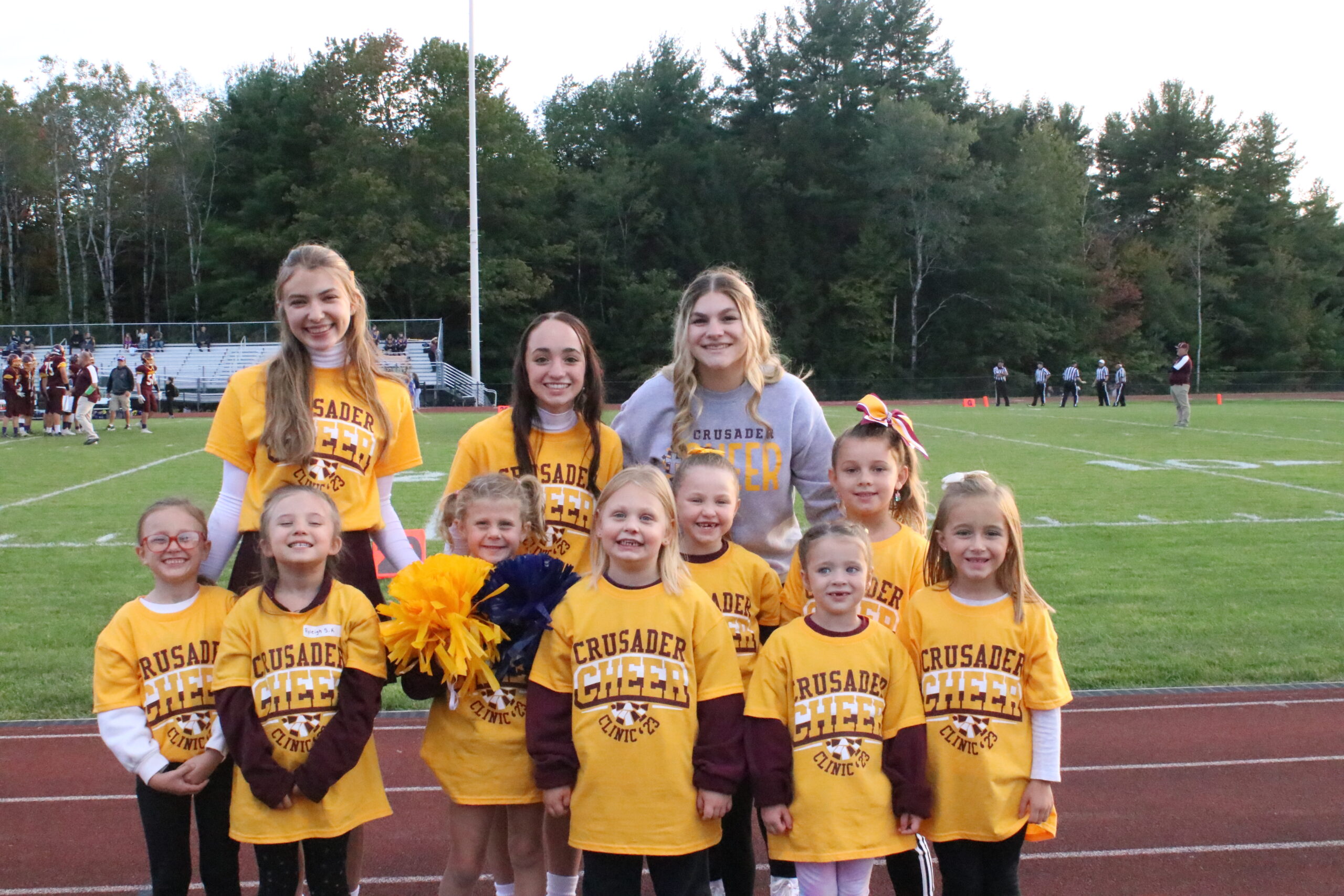 The cheer clinic participants got to cheer with the Varsity squad on September 22nd at the ECC vs. Otto Eldred football game while the 1st & 10 participants lined up to cheer on the Crusaders as they took the field.