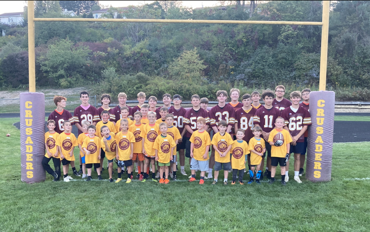The ECCHS Varsity coaching staff, cheerleaders, and football players held their annual Fall Cheer and Football clinics. The three-day cheerleading clinic for students in grades K-5 covered jumps, cheers, chants, dance, and stunting. The Crusader 1st & 10 Football Clinic for grades K-6 was held over five sessions where participants learned fundamental football skills, which included throwing, catching, kicking, and blocking.