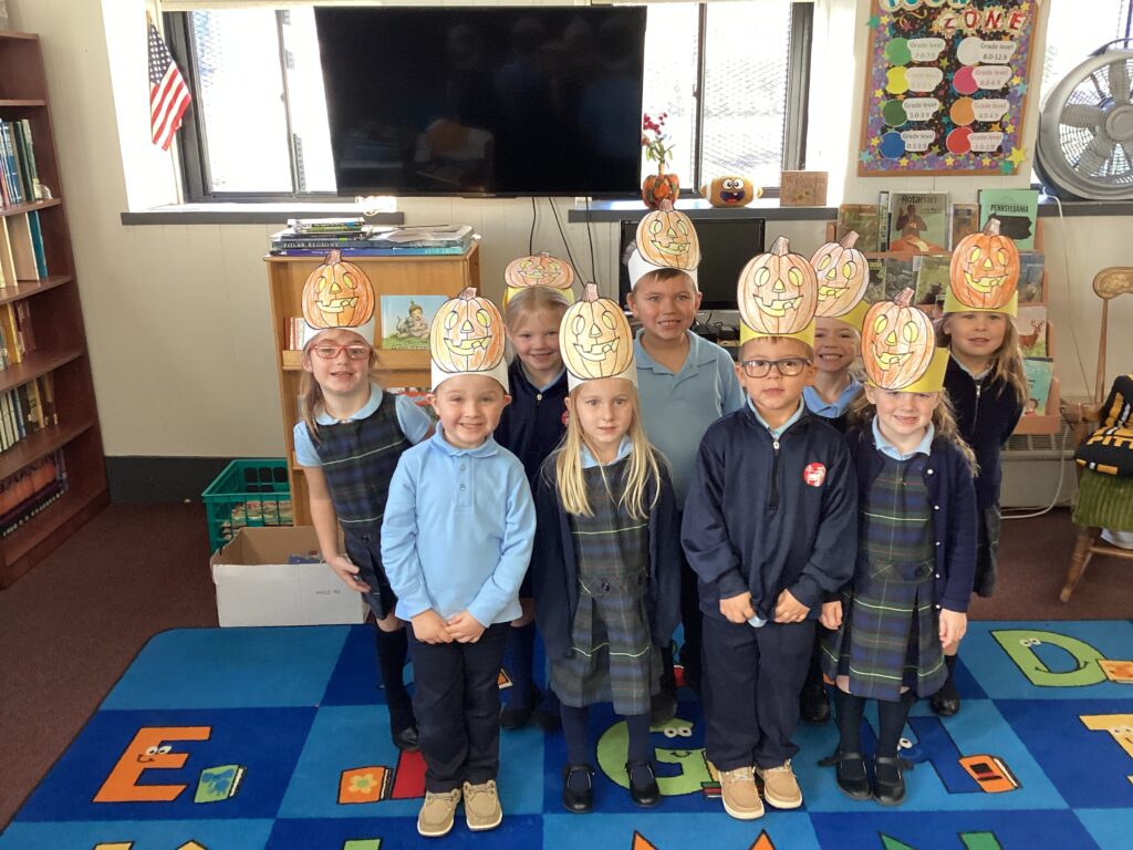 Mr. Slattery reminded students every time they see a Jack O’Lantern this Autumn that it represents the light of Jesus in the world. They finished their unit on Halloween by reading “The Monster at the End of The Book” and creating Jack O-Lantern headbands to remember that they carry the light of Jesus wherever they go.