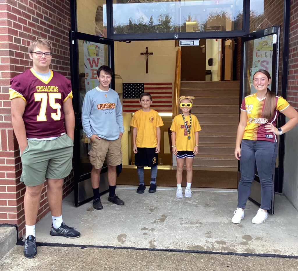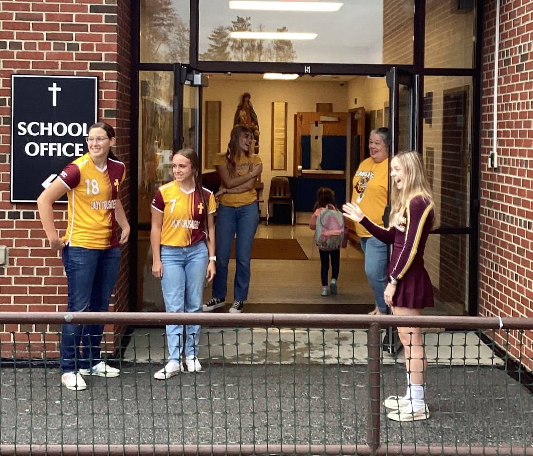 Rain didn’t stop our Seniors from spreading some Crusader Spirit to our elementary school students this morning as they arrived for school.