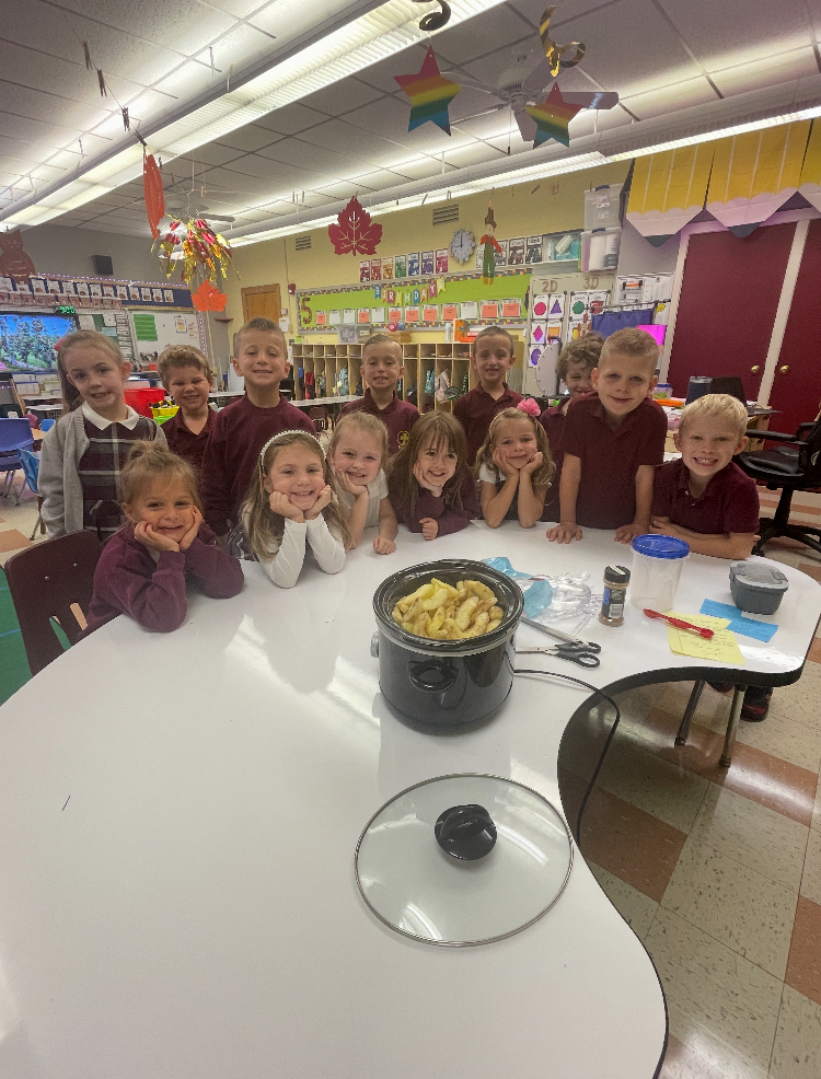 Mrs. Robert’s Kindergarten class at St. Marys Catholic Elementary School welcomed fall by making applesauce. After waiting patiently all day, the class enjoyed some delicious homemade applesauce.