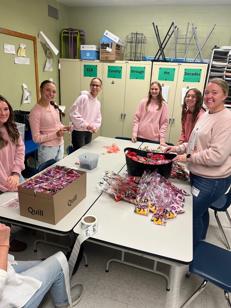 Ms. Neilson and Mrs. Yost’s Pay It Forward Club at Elk County Catholic High School assisted the St. Marys Area Chamber of Commerce in stuffing treat bags for this Friday’s Business trick-or-treat.