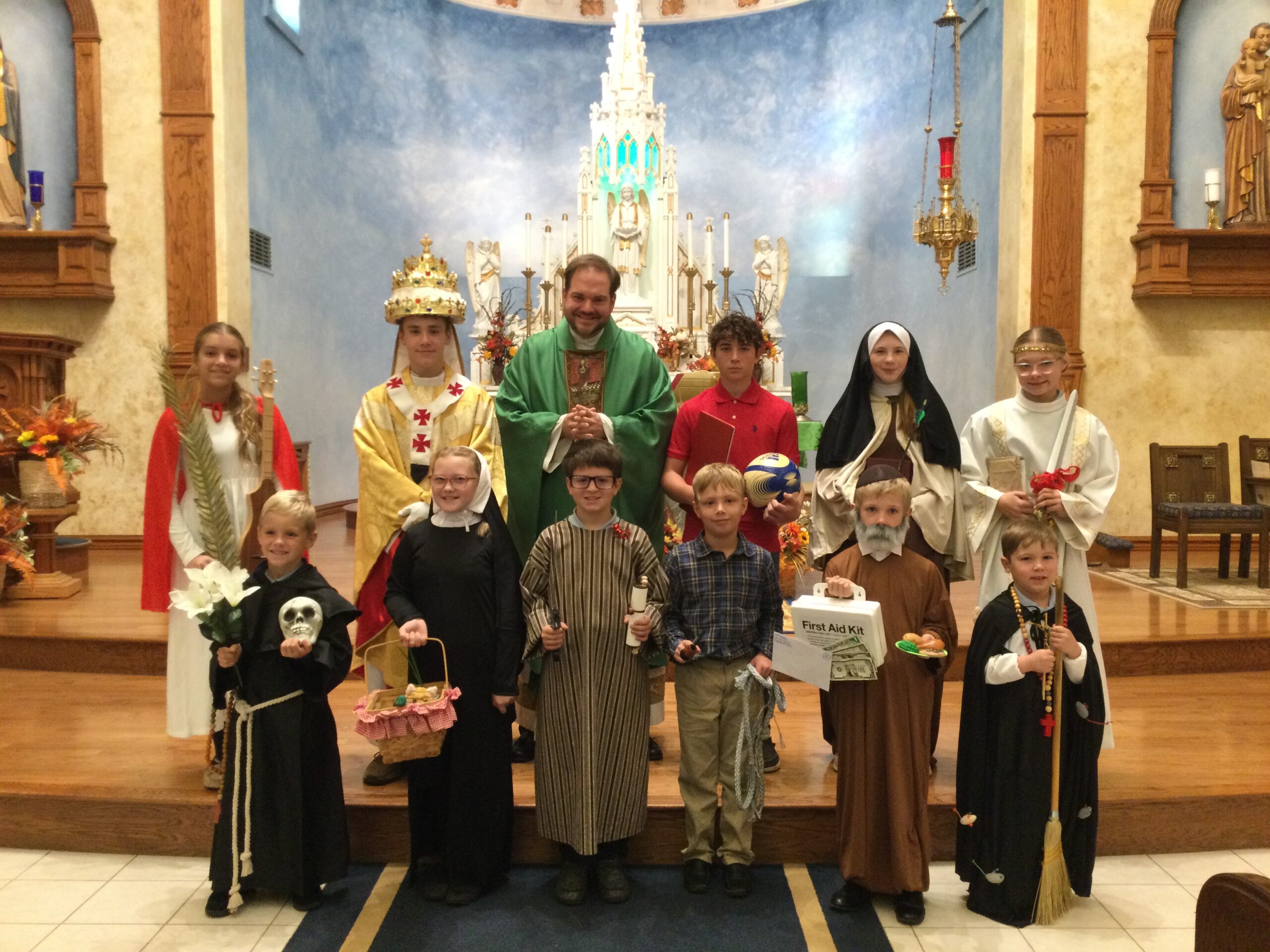 With All Saints Day falling on a Saturday, St. Leo School decided to celebrate its Memoriam Mass a little early. Each year, St. Leo teachers choose a patron Saint for their classroom, and on All Saints Day, one student from each class is chosen to dress up and portray their class Saint. Then, Fr. Justin tries to guess the Saint during the homily. ✝