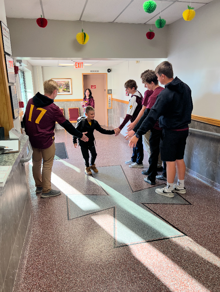 This morning, the Crusader Soccer Teams greeted students upon arrival to get everyone excited for the Homecoming Game this evening.