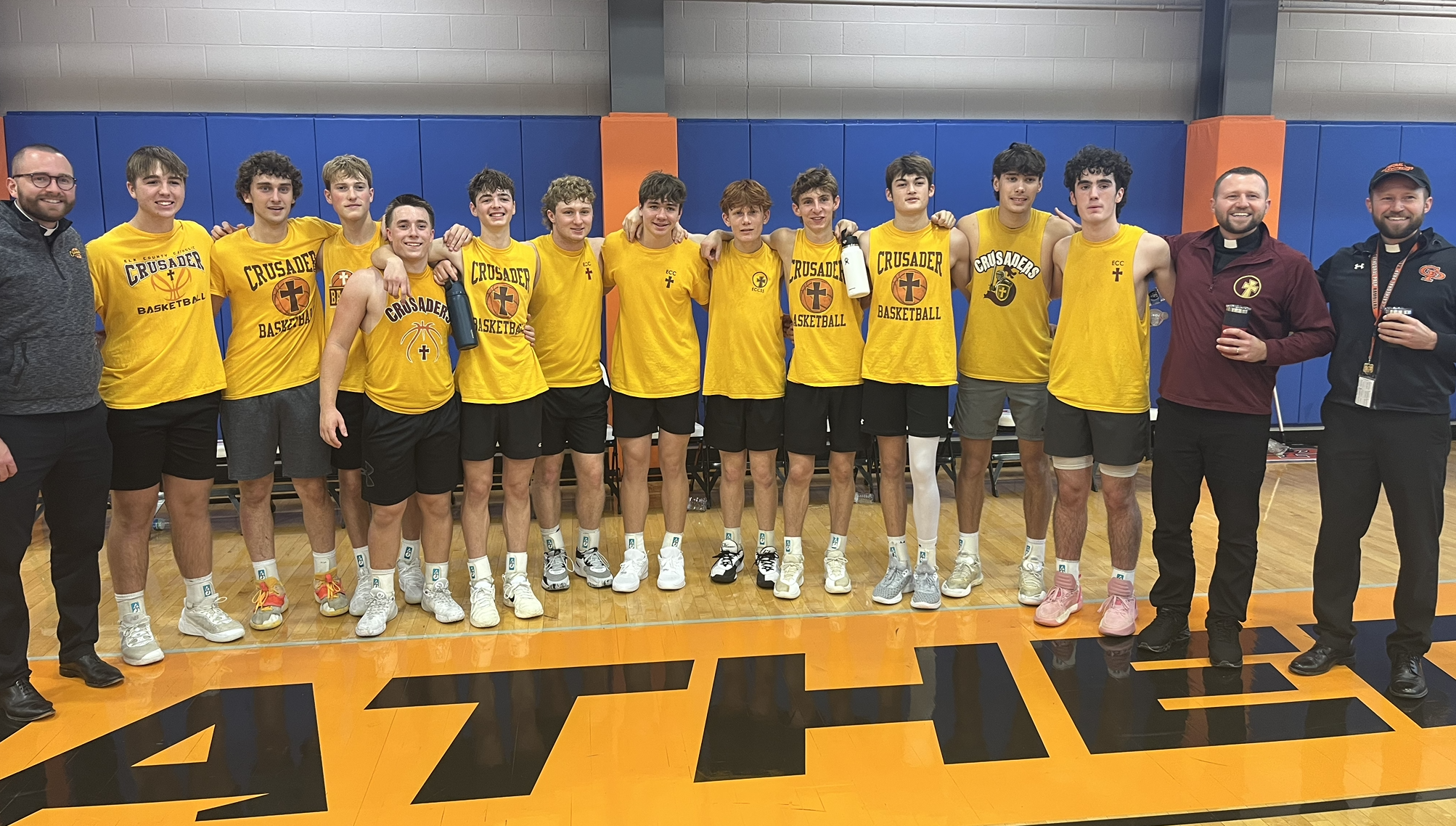 ECC Class of 2011 Alum and former teachers Fr. Ben and Luke Daghir, along with former ECCHS Campus Minister Fr. Kevin Holland, cheered on the teams. Fr. Ben is currently the Chaplain at Cathedral Prep. and Fr. Kevin was a graduate of Cathedral Prep. Fr. Luke is the Parochial Vicar at Our Lady of Peace and Sacramental Assistant at Mercyhurst University. It was a special and faith-filled moment for our Crusaders and a great day for basketball!