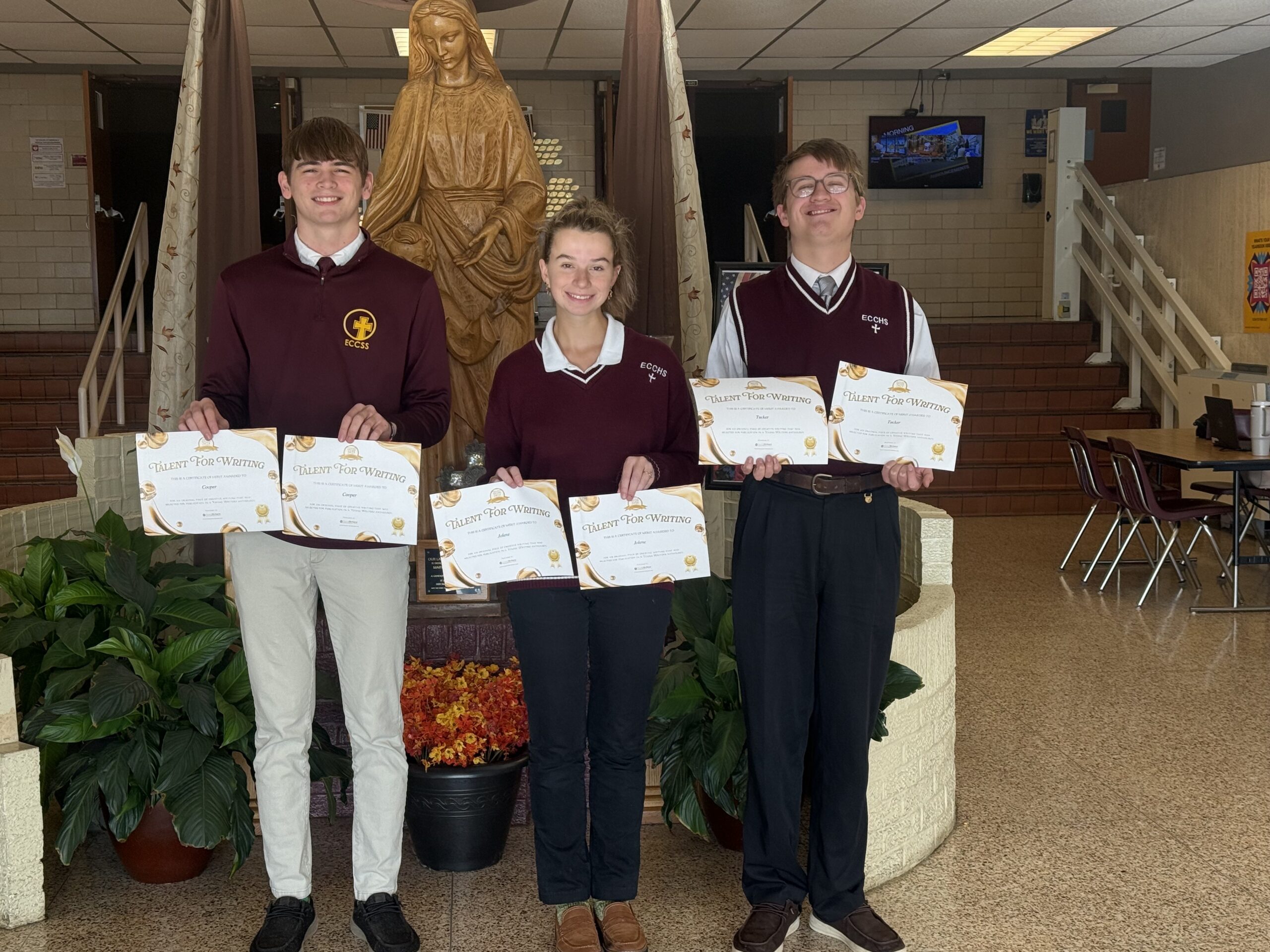 Creative Writing Students Cooper Aramagost (12), Tucker Bish (11), and Jolene Rippey (11) have been selected for publication in two Young Writers anthologies – Stranger Sagas and Fright Club 2025. This is the second time this year these students have been chosen for publication in a Young Writers contest. Their creative work stood out among thousands of entries from across the country, showcasing exceptional talent, imagination, and voice.