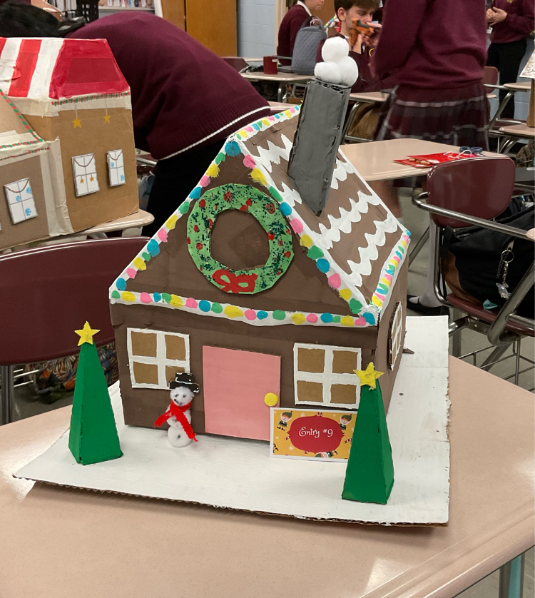 Students in Ms. Neilson’s Geometry class at Elk County Catholic High School designed and built geometric Gingerbread houses. Students were required to incorporate geometric concepts into their designs to conclude the first semester of the course. First-, second-, and third-place designs were decided in a tight race, with all middle and high school students and staff voting for the winners. Great job to all students on your designs!