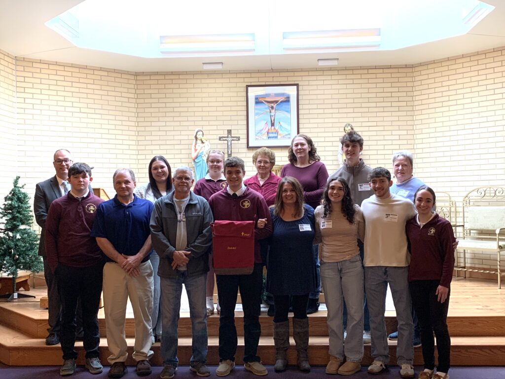 Pictured left to right are ECCSS President Ted Hanes, Matthew Reedy, Vern Kreckel III, Sarah Reedy, Dale Vogt, Lauren Reedy, Isaac Vogt, Mary Kreckel, Jen Vogt, Annie Reedy, Gerrianne Vogt, William Wortman, Brody Stauffer, Geraldine Vogt, and Amelia Meyer.
