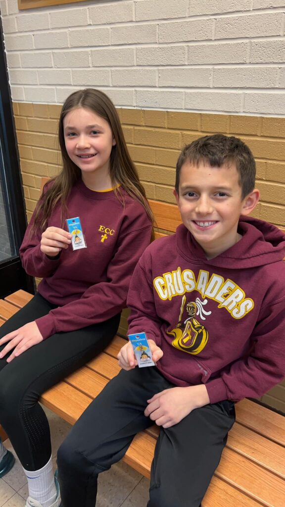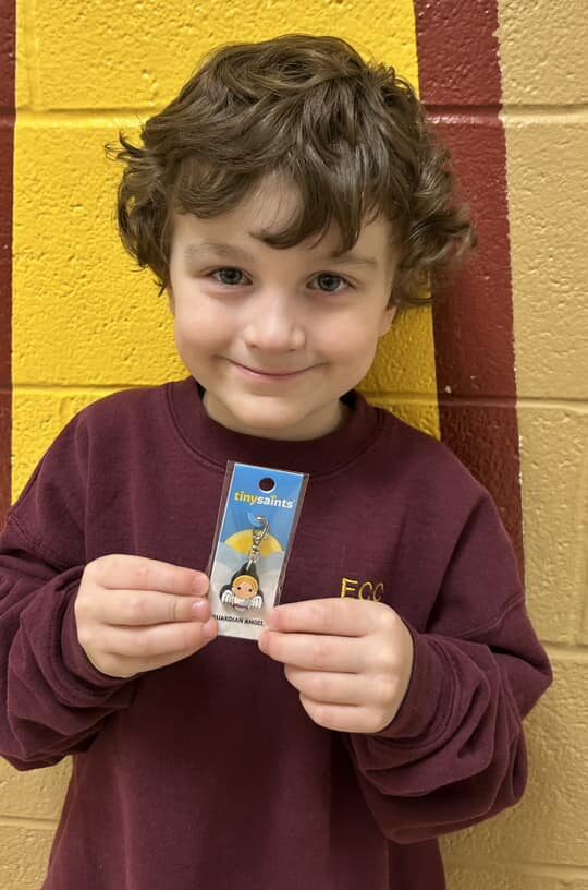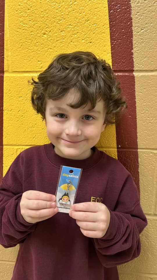 Today—and throughout the week—students will have the opportunity to earn their “Angel Wings” (Tiny Saints keychains) by showing acts of kindness in their classrooms.
