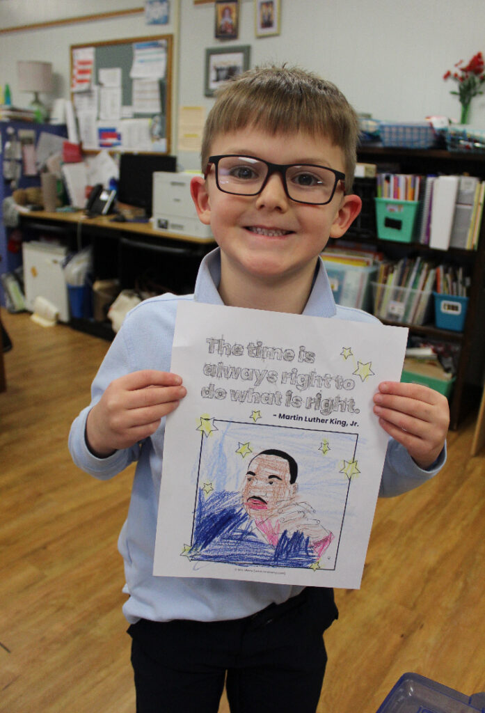 St. Leo Catholic School Kindergarten students Teddy Buck and Logan Grubbs share a beautiful and powerful message in honor of Martin Luther King Jr.