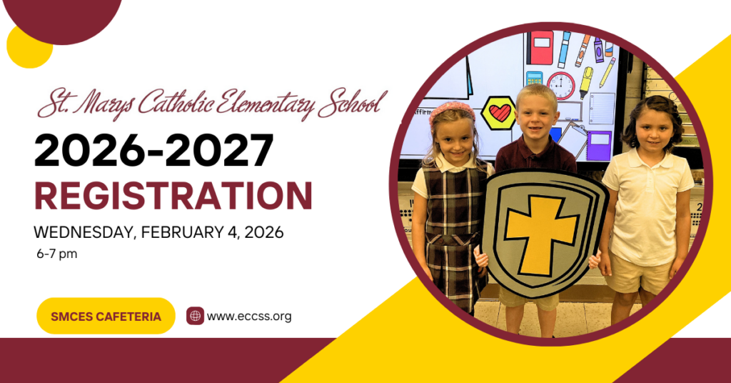 St. Mary’s Catholic Elementary School will hold its 2026-2027 registration this evening, Wednesday, February 4, from 6-7 p.m. in the cafeteria.