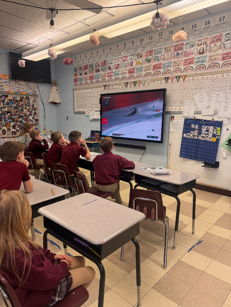 GO TEAM USA! Our second graders at St. Marys Catholic Elementary are catching Olympic fever! ❄️ From cheering on their favorite athletes on the big screen to learning about the games in Italy, these students are our biggest fans! 🥇
