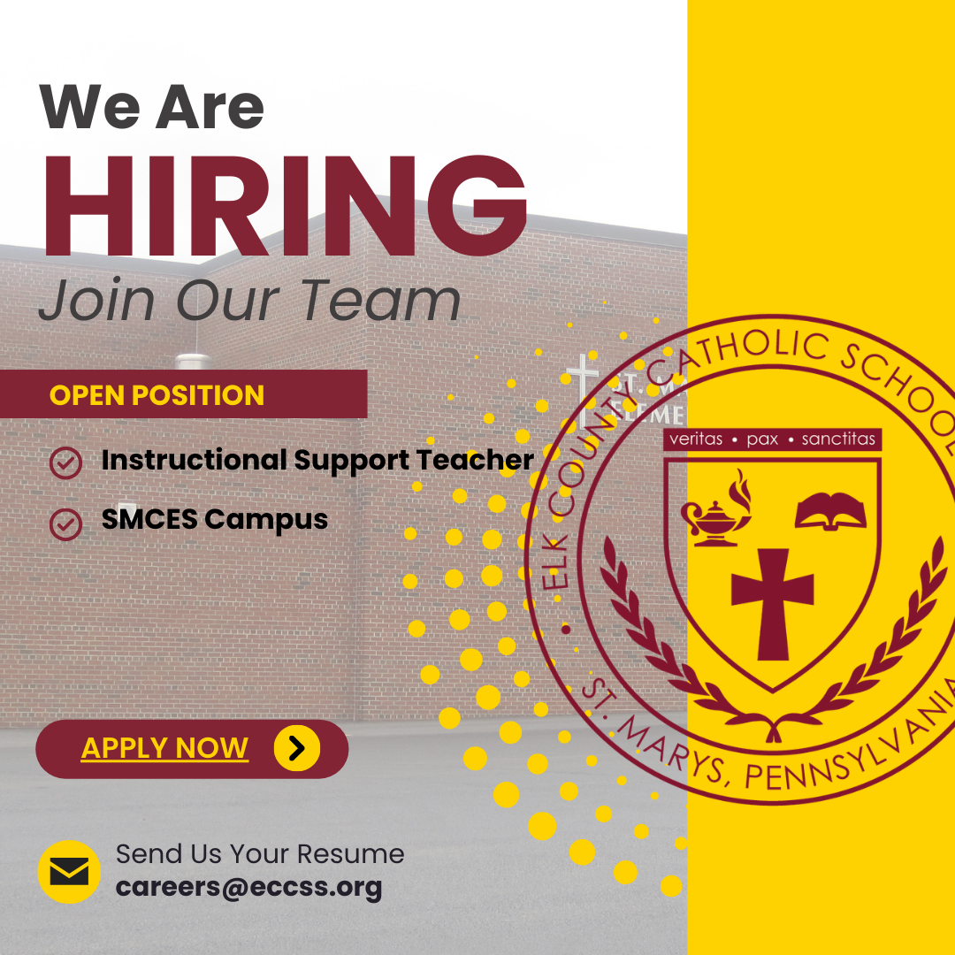 St. Marys Catholic Elementary School is seeking qualified candidates for the position of Elementary Instructional Support Teacher (IST). This role provides targeted instructional support to students and staff through the implementation of Targeted Learning Centers (TLC) and individualized interventions to maximize student achievement.