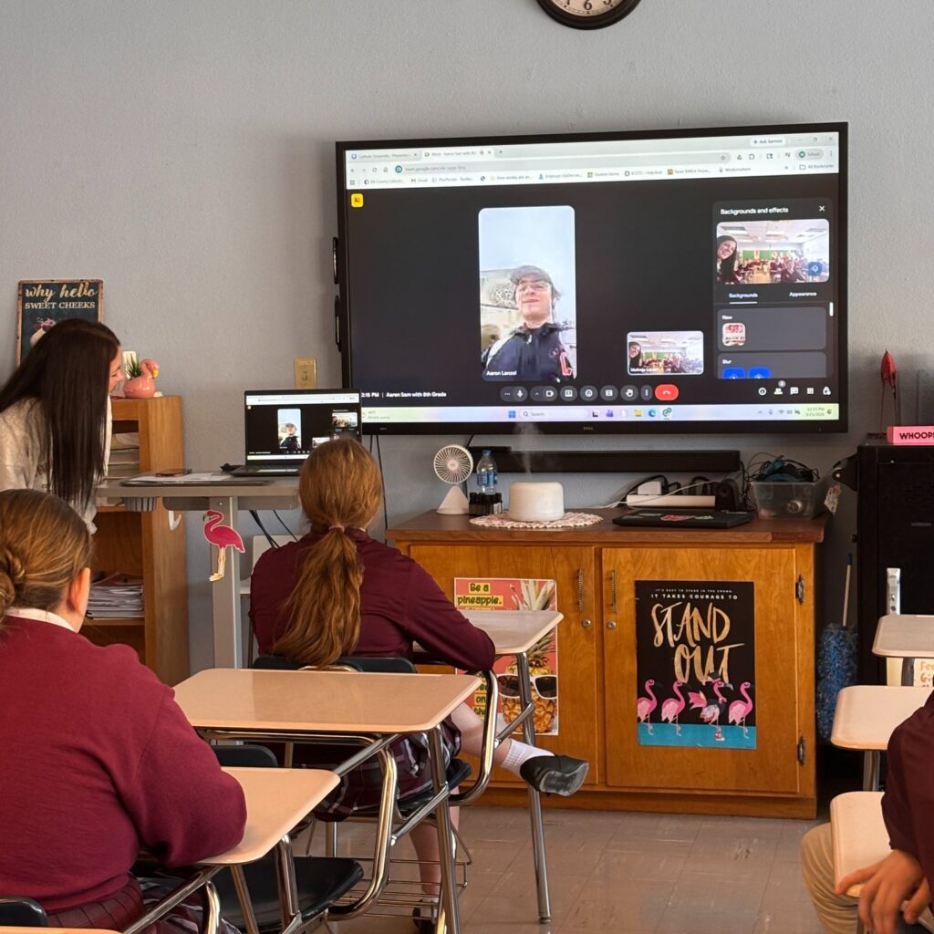 As an extension of their 8th-grade March Madness project, our SMCMS students took their learning one step further with a special virtual visit from ECC alumnus Aaron Lanzel, Class of 2025, who is currently attending The Catholic University of America in Washington, D.C.